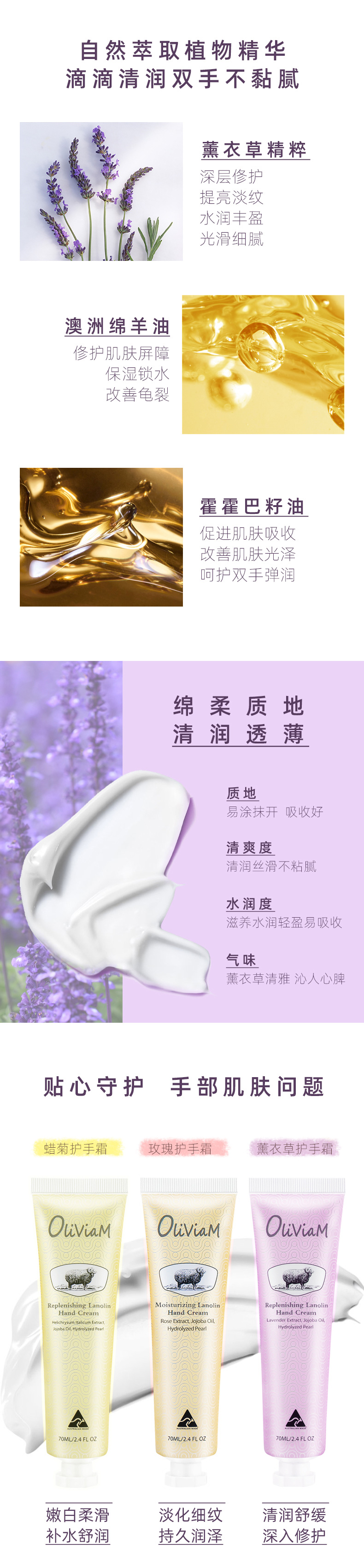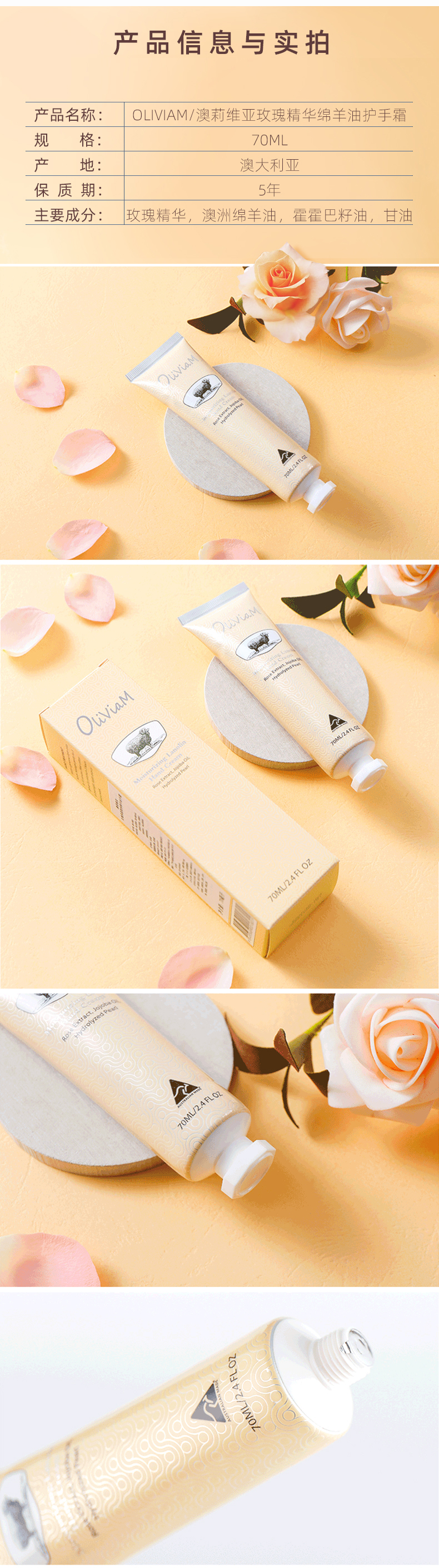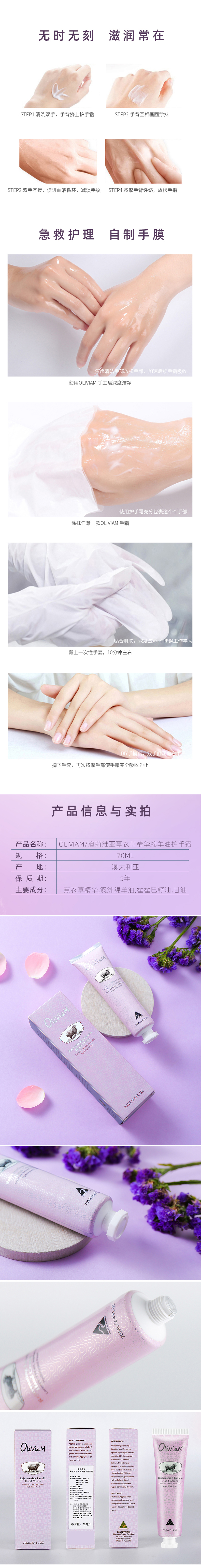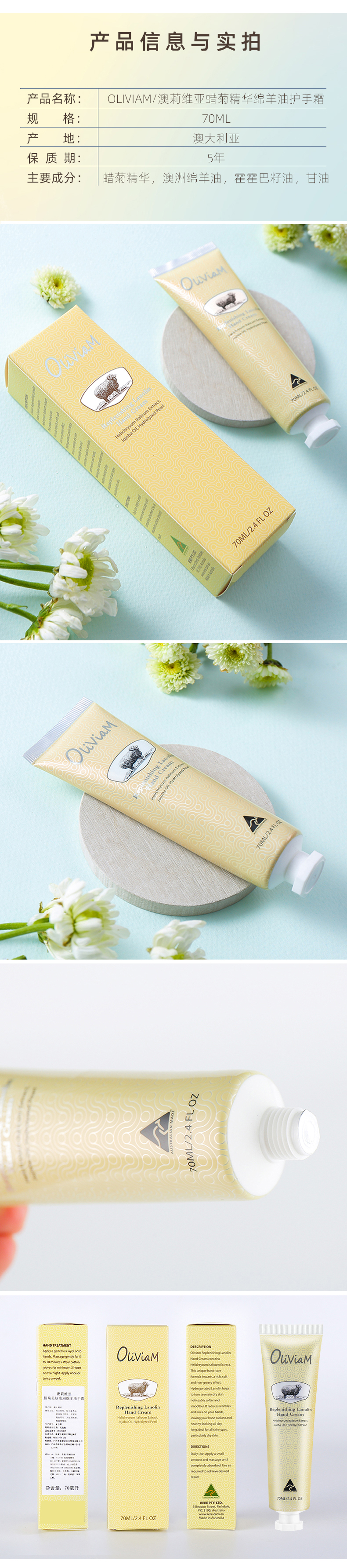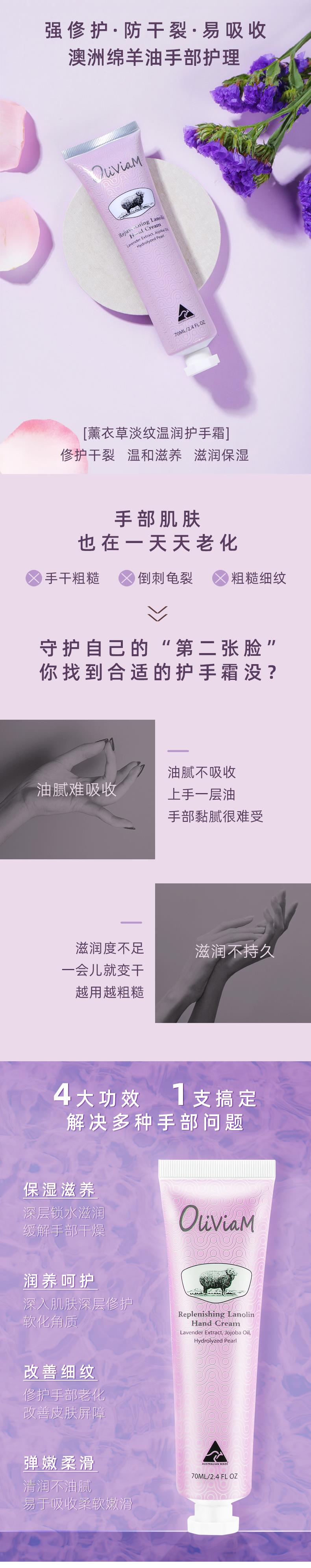 【中欧班列2支】 澳洲护手霜 原装进口Oliviam/澳莉维亚绵羊油护手霜玫瑰保湿 蜡菊美肤 薰衣草修护 70g/支 ALWY