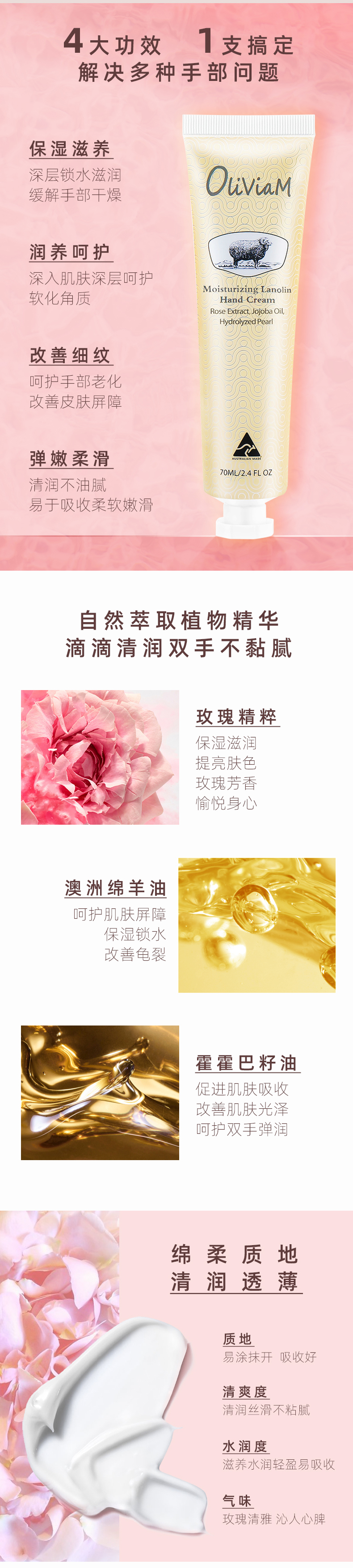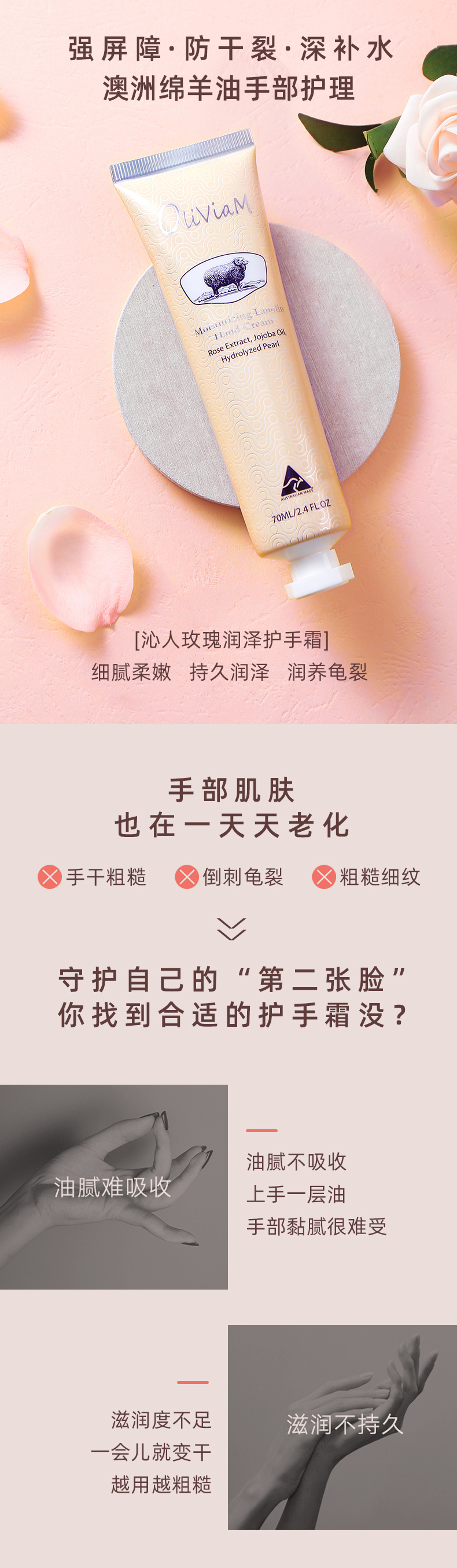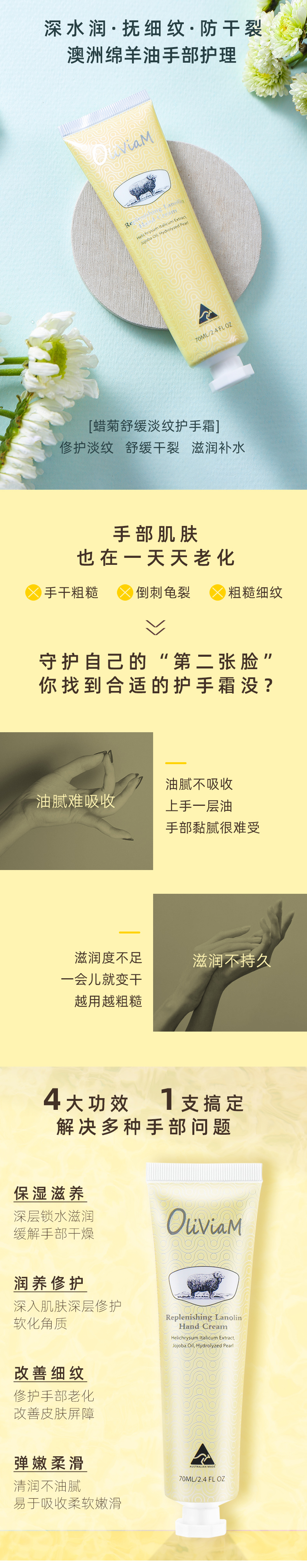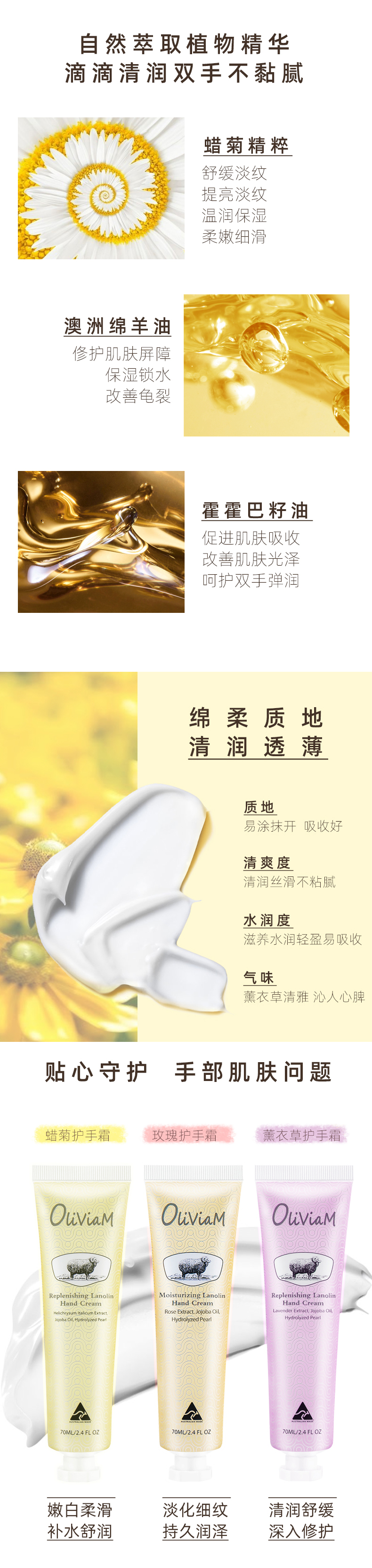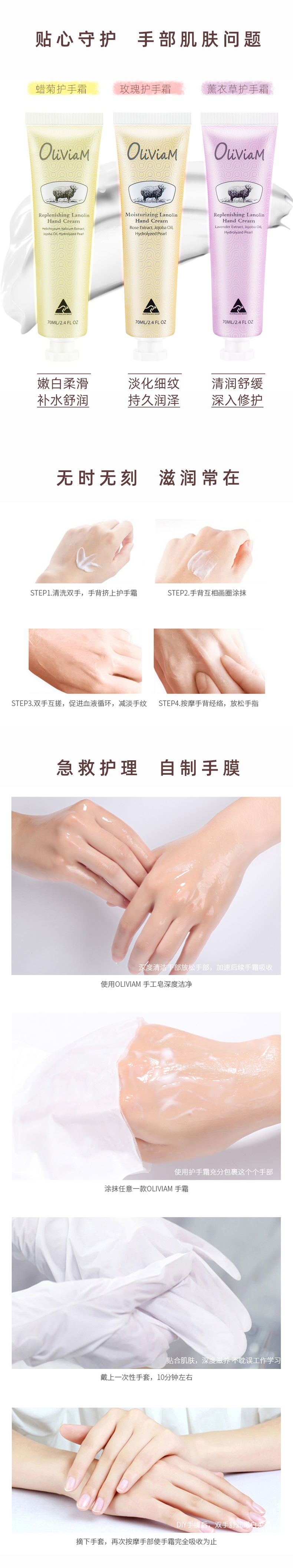 【中欧班列2支】 澳洲护手霜 原装进口Oliviam/澳莉维亚绵羊油护手霜玫瑰保湿 蜡菊美肤 薰衣草修护 70g/支 ALWY
