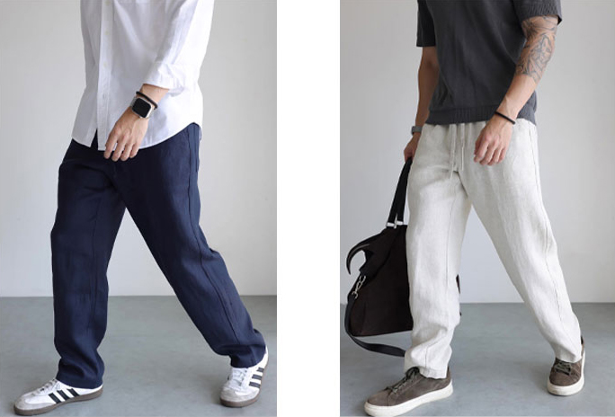 颜色选了亚麻的本麻色、藏青色两色。不管什么年龄段都能穿出一样高级的风格。
