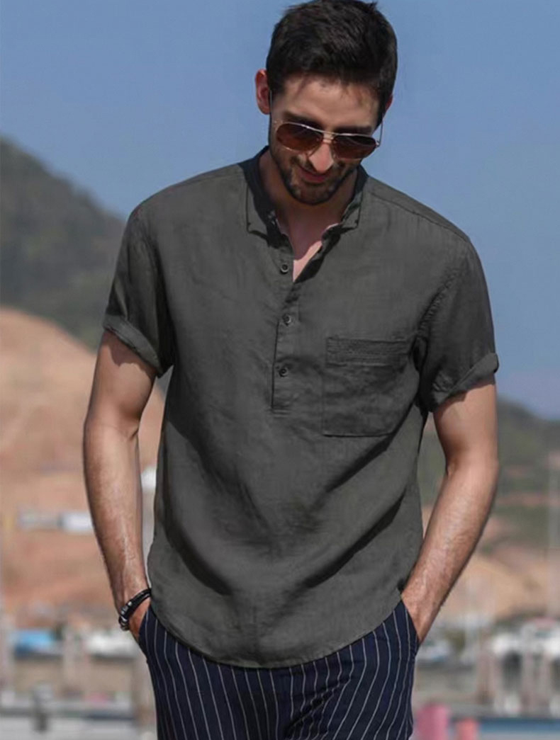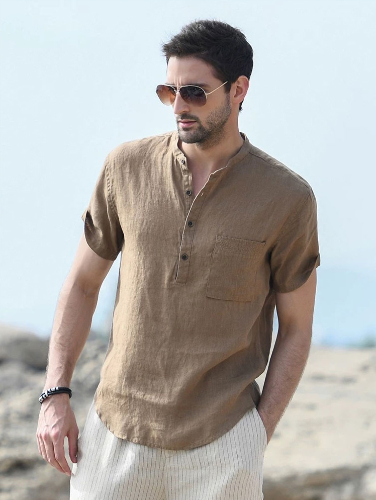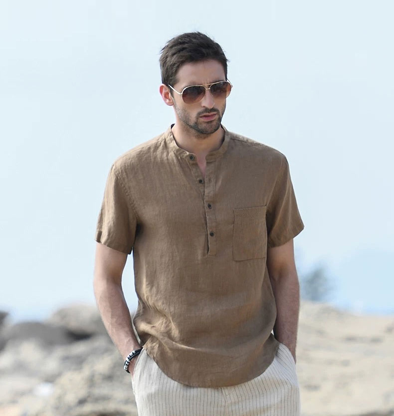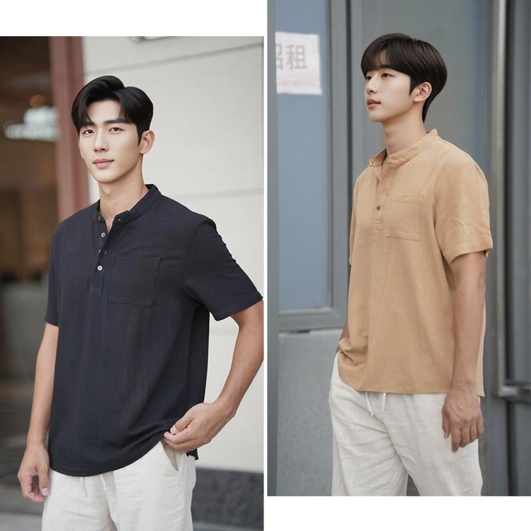 HERACHOLE 男士亚麻短袖衬衫&裤子,高级慵懒,亚麻材质,透气清凉,另搭配亚麻长裤、短裤【G】