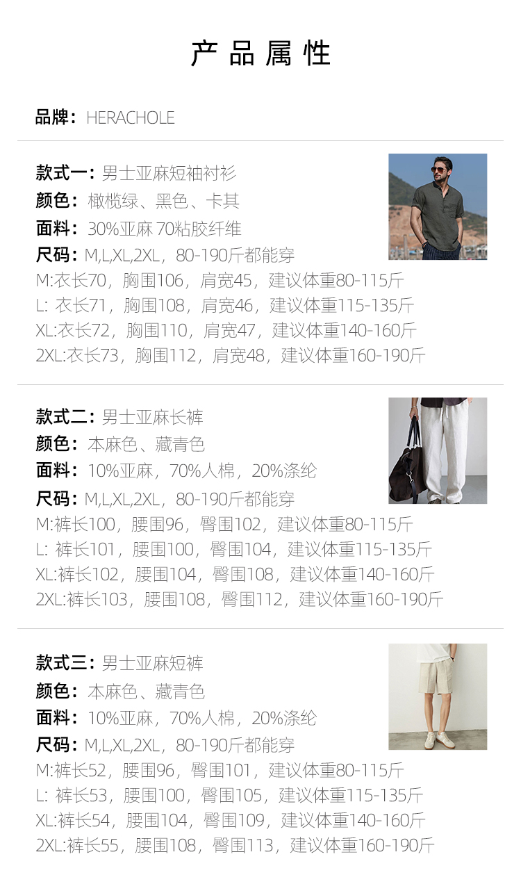 今天这个专场也给男士选了亚麻短裤。