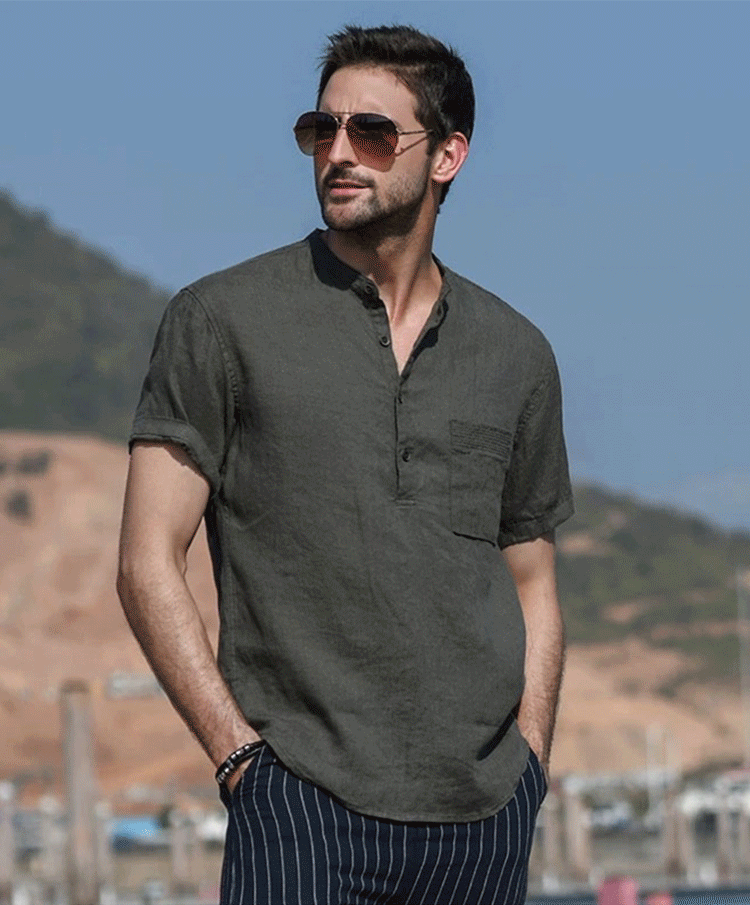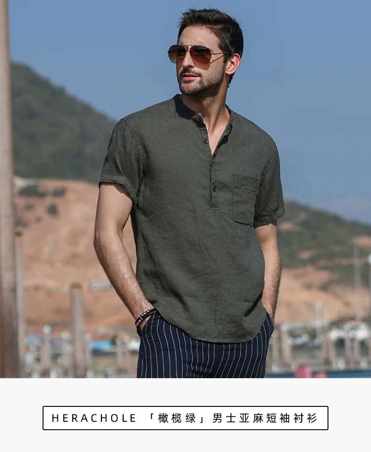 这件「橄榄绿」男士亚麻短袖衬衫,我愿称之为今年夏天男生的心动款。