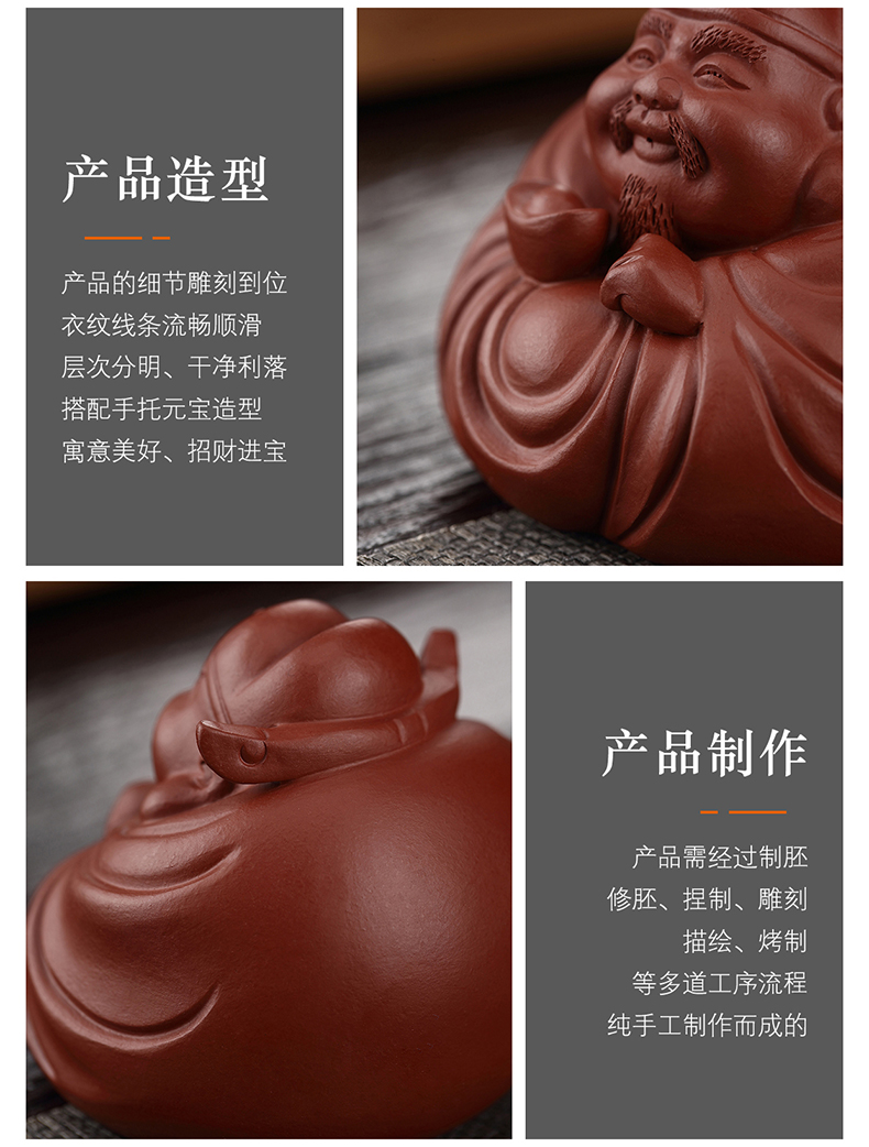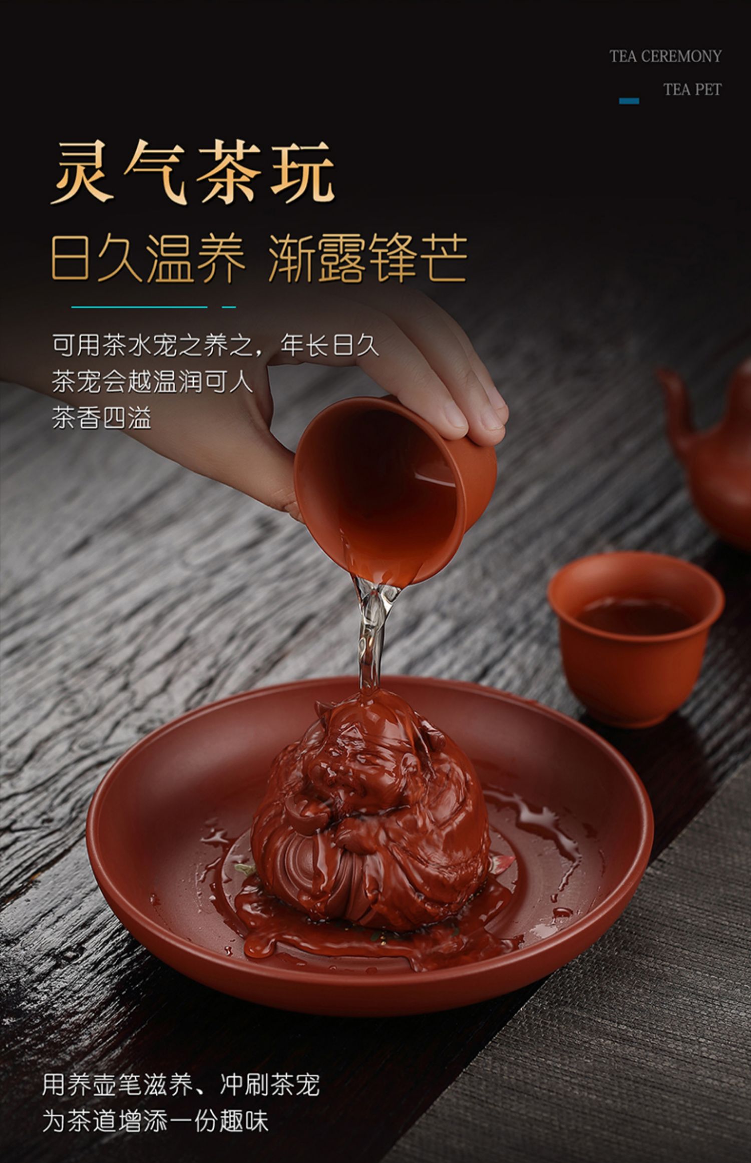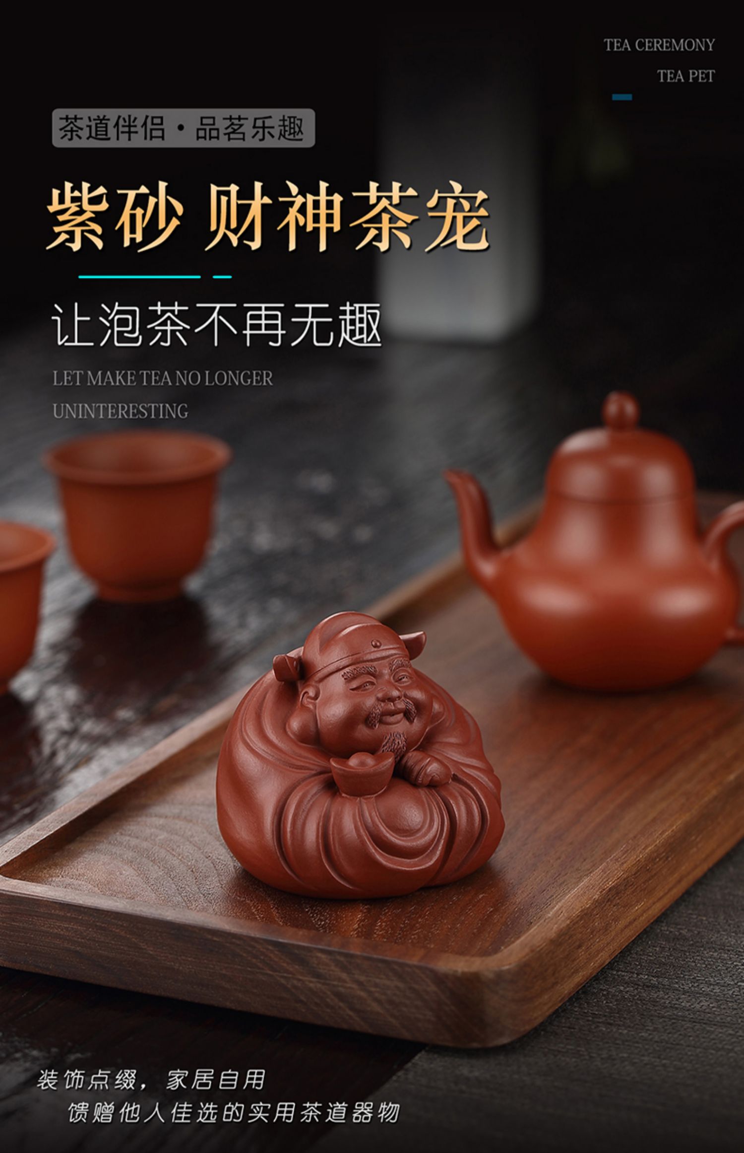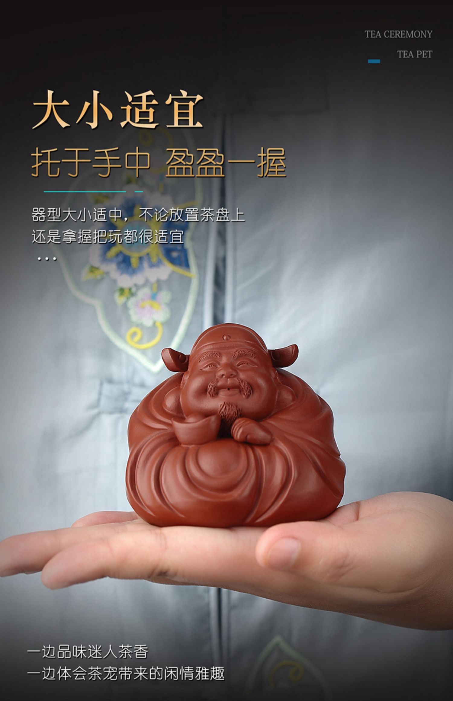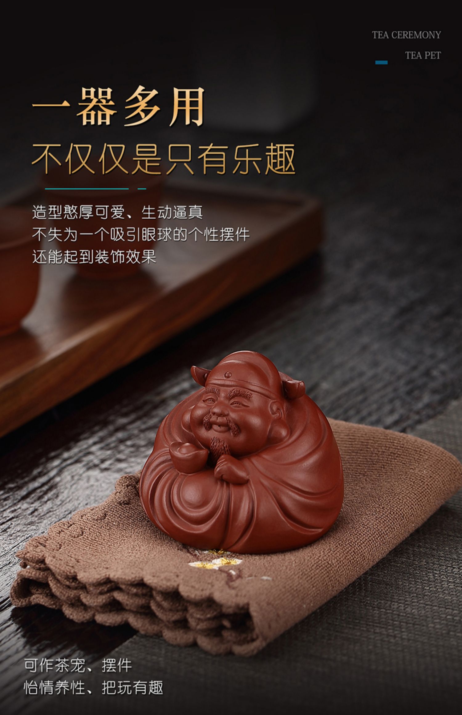 智慧 紫砂茶宠财神摆件可养宜兴手工精品茶玩茶盘摆设茶玩