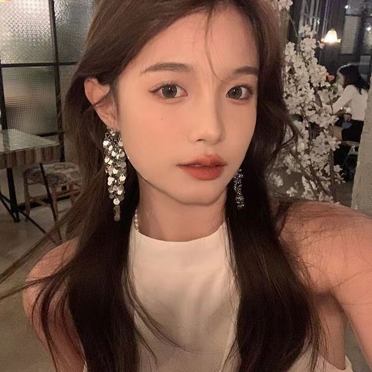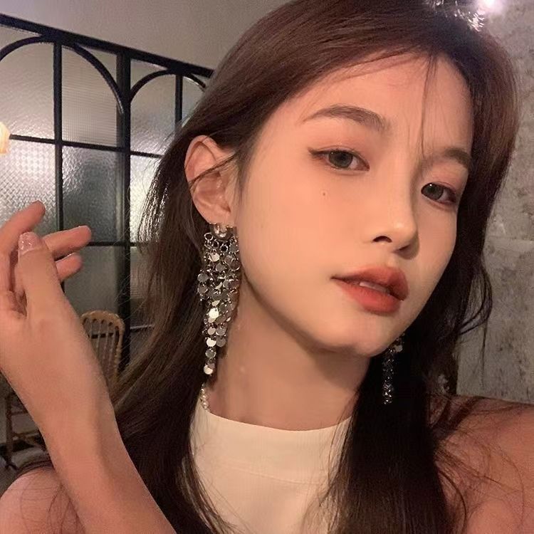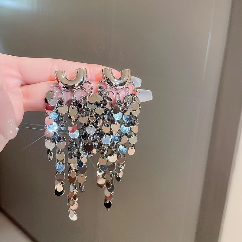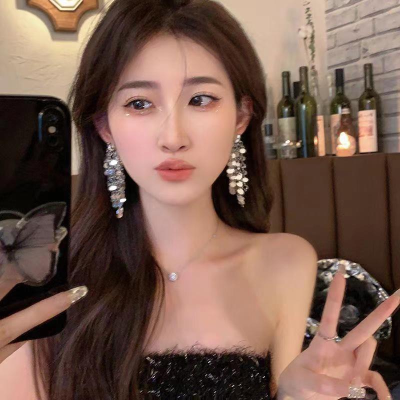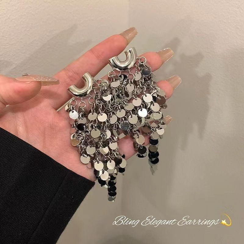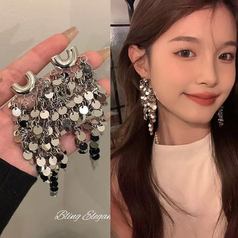 轻奢高级感夸张金属亮片流苏耳环女设计时尚气质名媛新娘婚纱耳饰