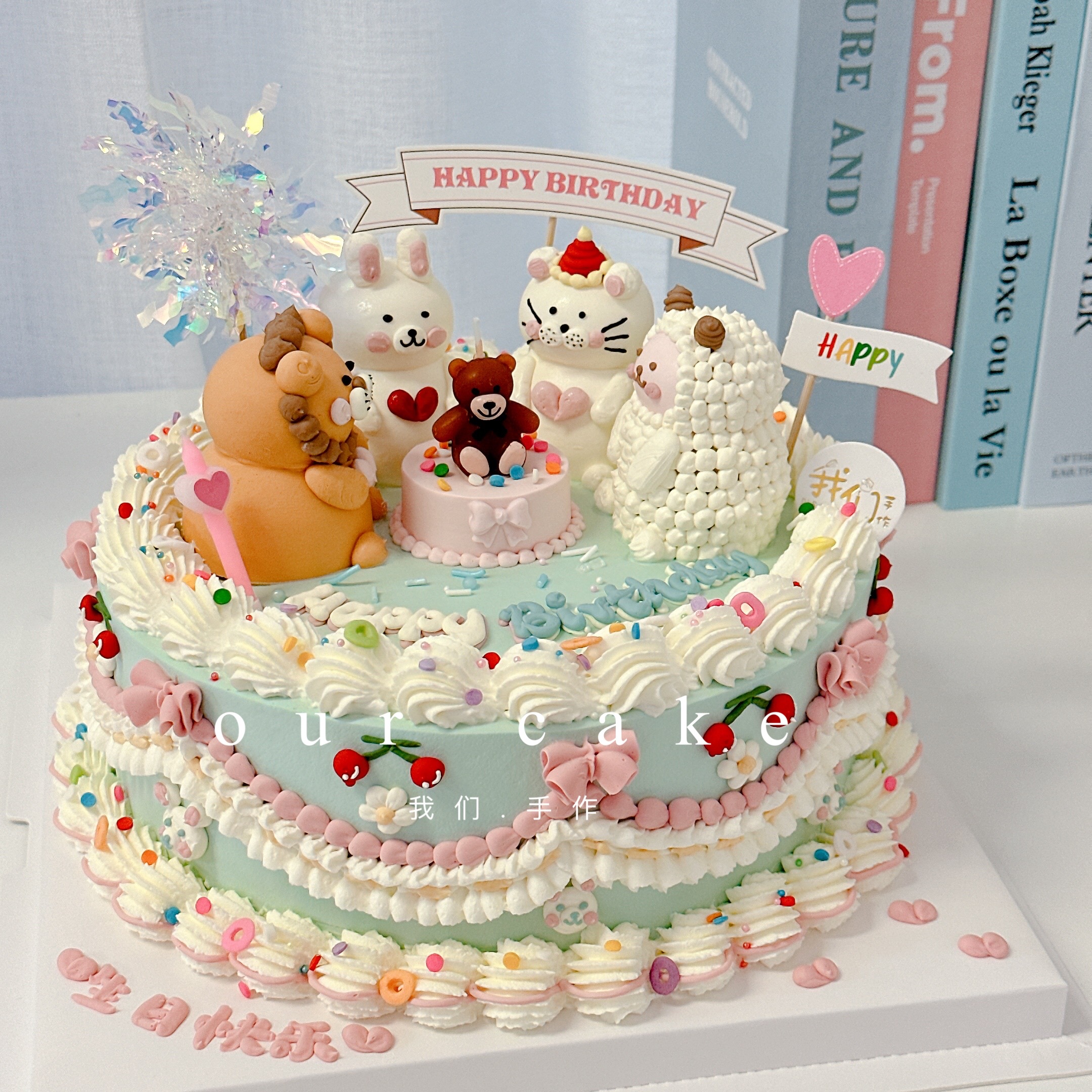 立体小动物复古蛋糕(提前告知客服要什么小动物以及哪个画生日帽)-低糖处理无添加