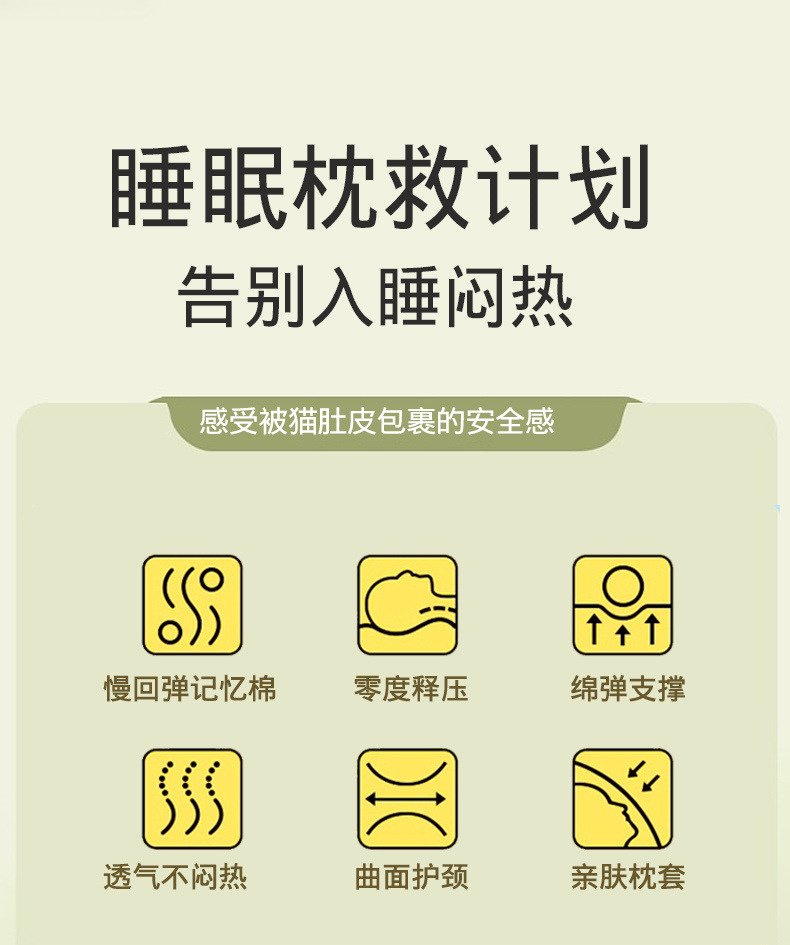冰豆豆猫肚皮枕头夏季凉感学生宿舍护颈椎睡眠记忆棉家用午睡枕女新款爆款小红书网红同款