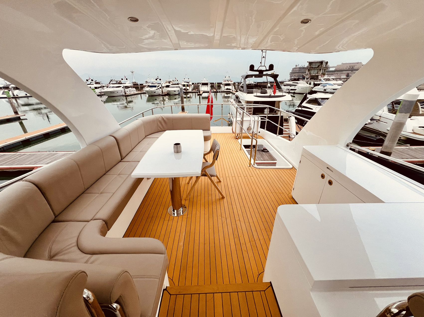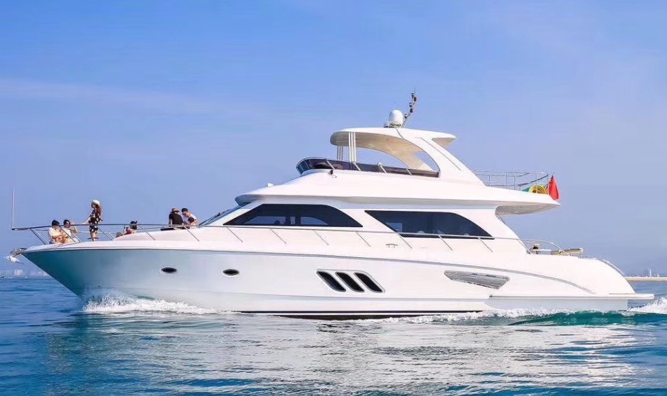 船型:63尺豪华游艇,上下三层、船上配置客厅、KTV、卧室、沙发、洗手间、厨房、大飞桥360度观景平台