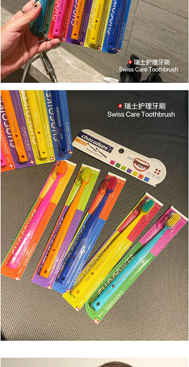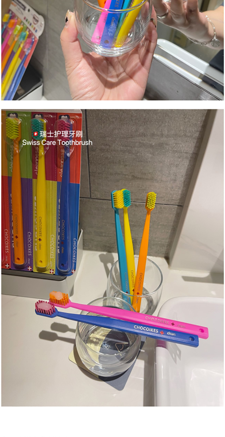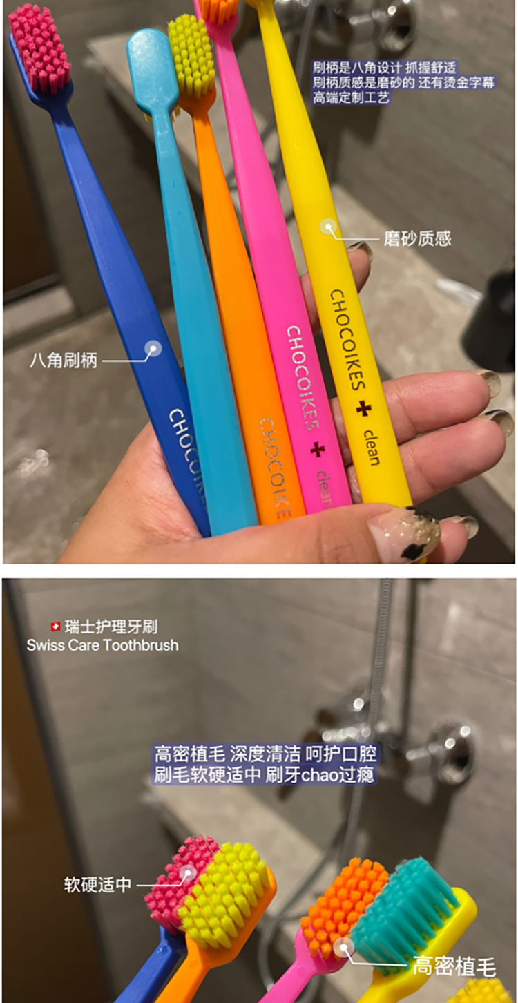「5支装!不止颜值」chocoikes护理牙刷 高密度软毛炫彩糖果色系成人牙齿护理牙刷口腔护理