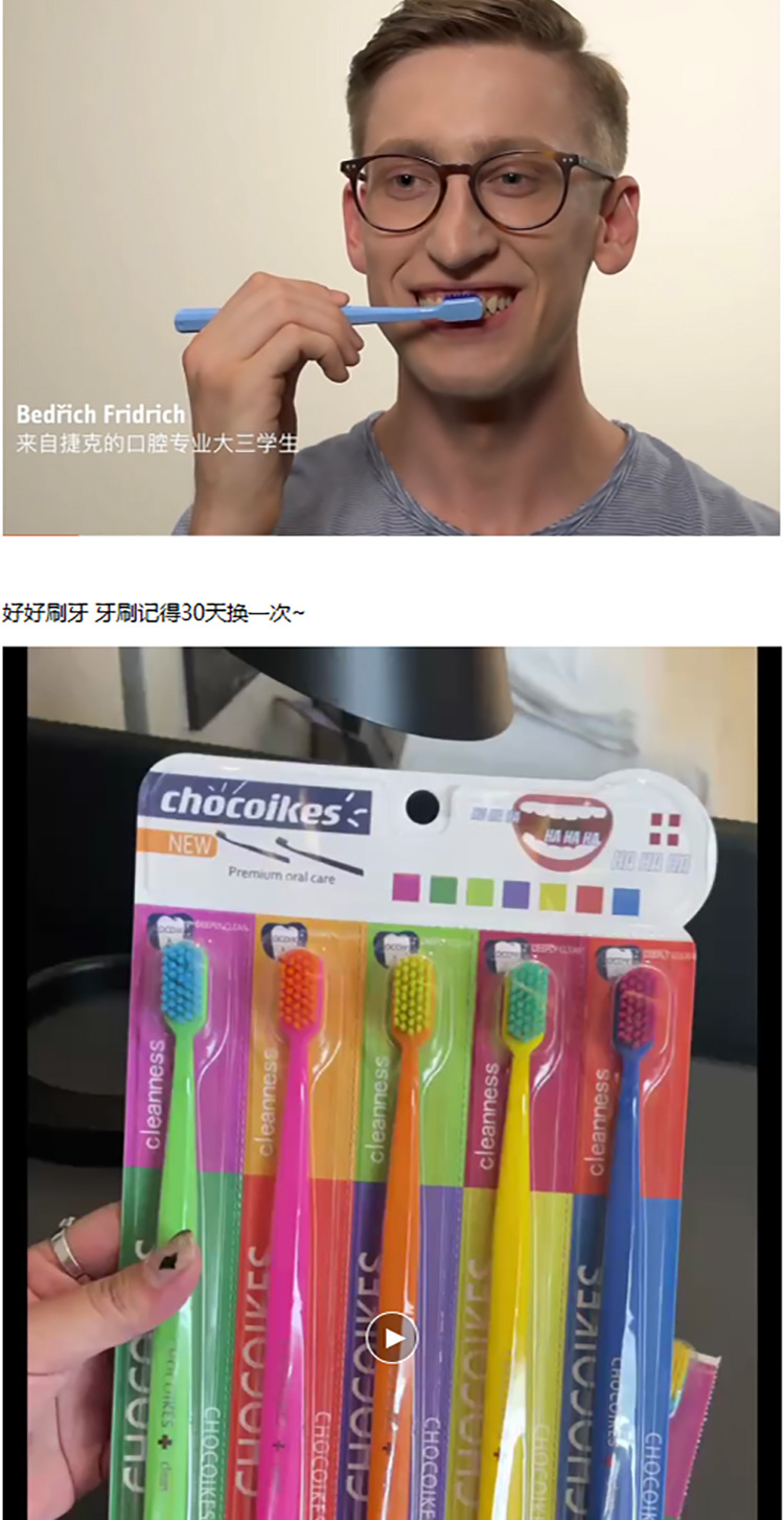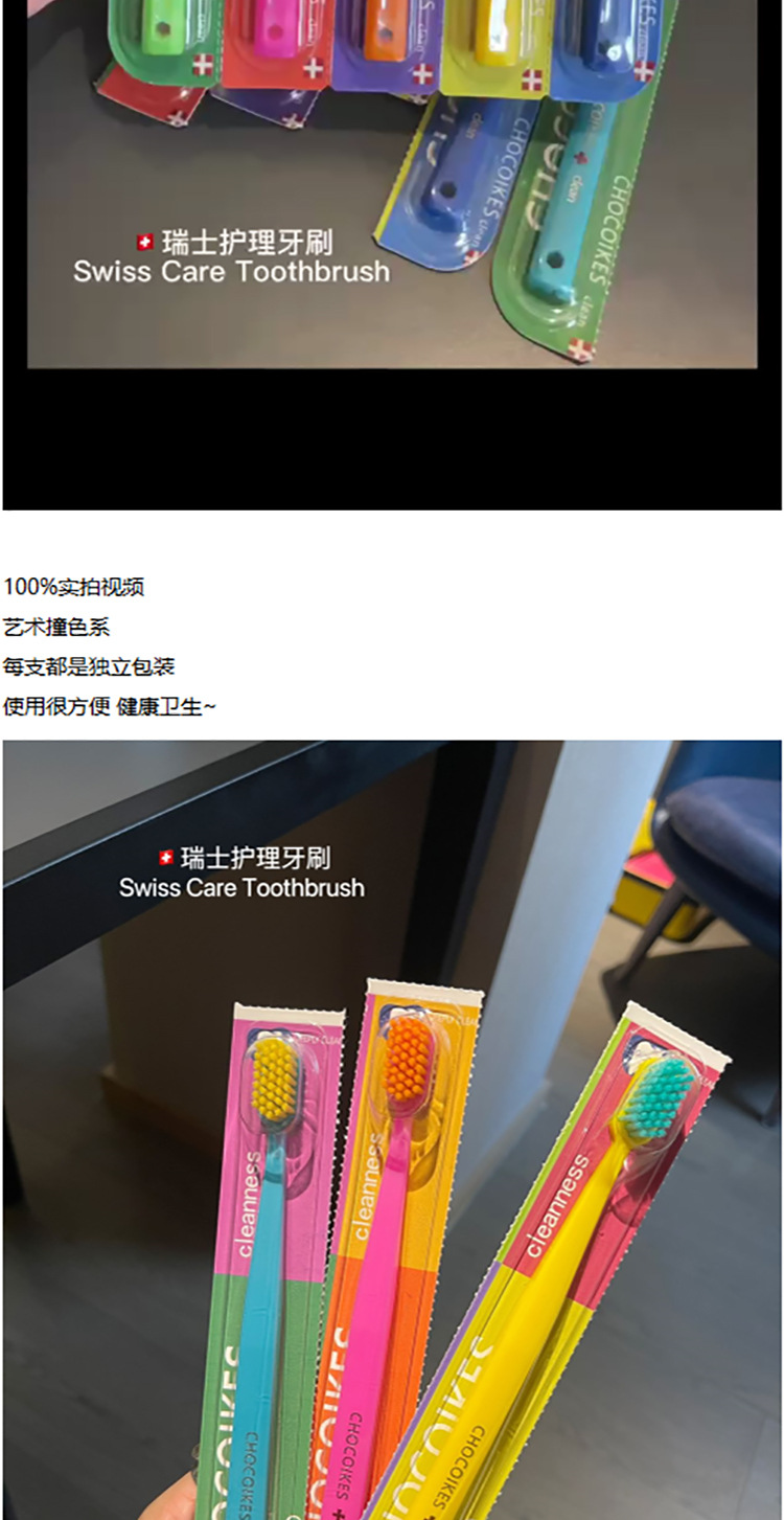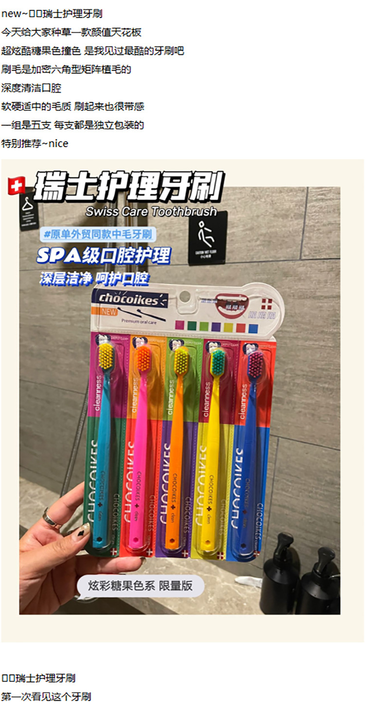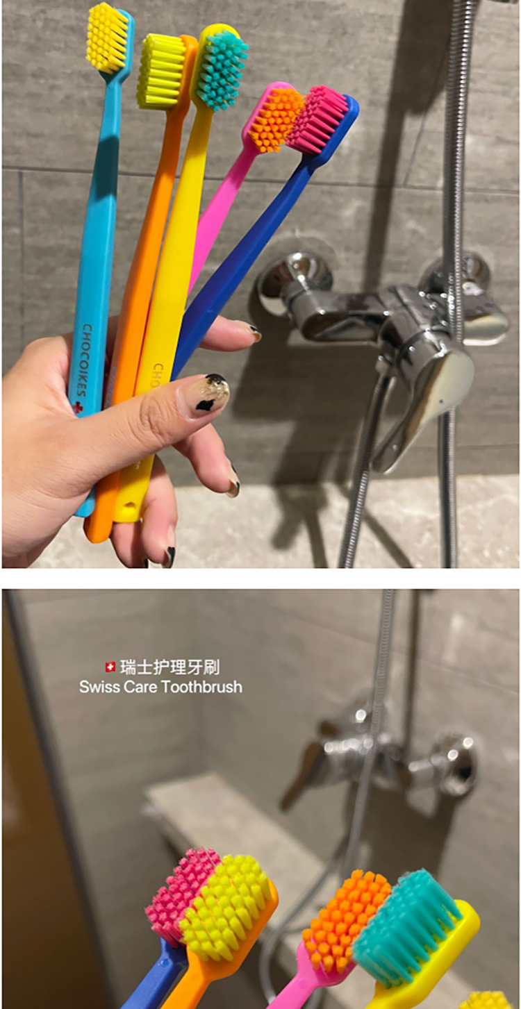 「5支装!不止颜值」chocoikes护理牙刷 高密度软毛炫彩糖果色系成人牙齿护理牙刷口腔护理