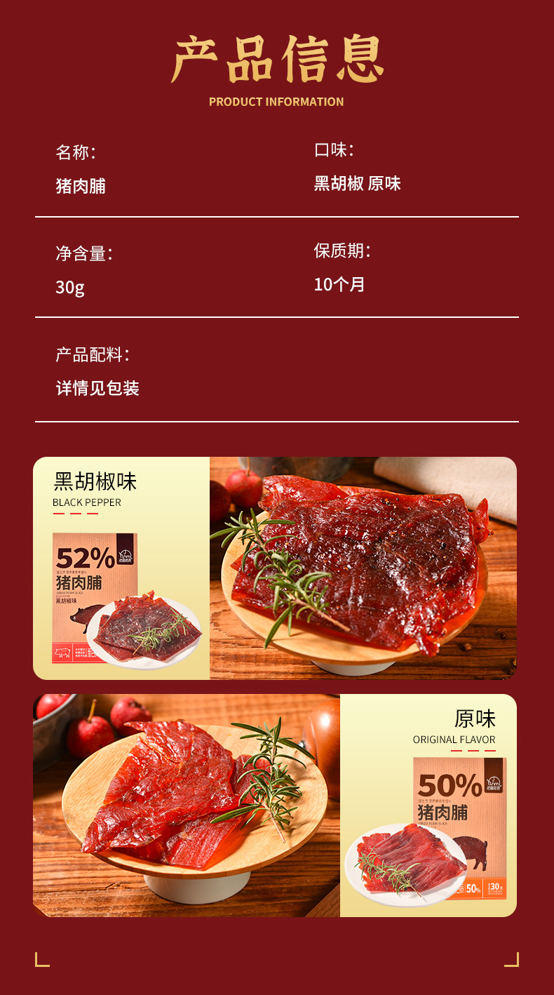 「两款口味」法思觅语猪肉脯 原味黑胡椒味猪肉脯干独立包装休闲零食抖音畅销款