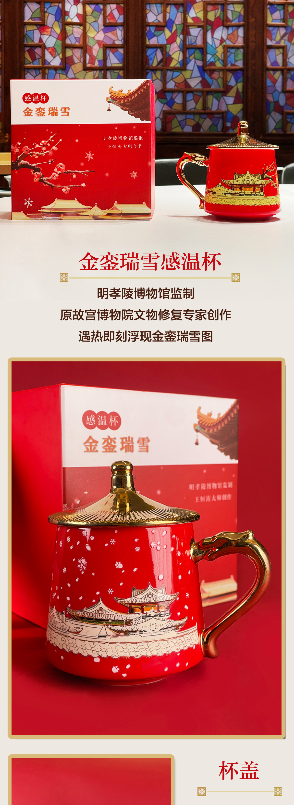 金銮瑞雪感温变色杯 故宫文物大师亲创雪景 明孝陵博物馆监制 鎏金工艺