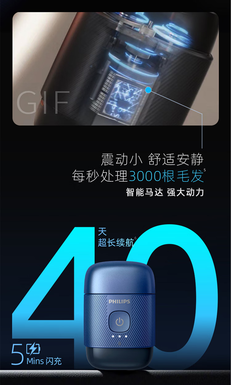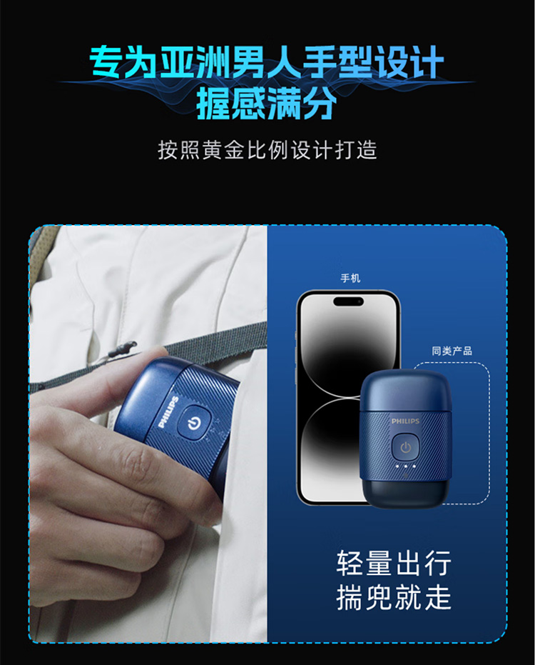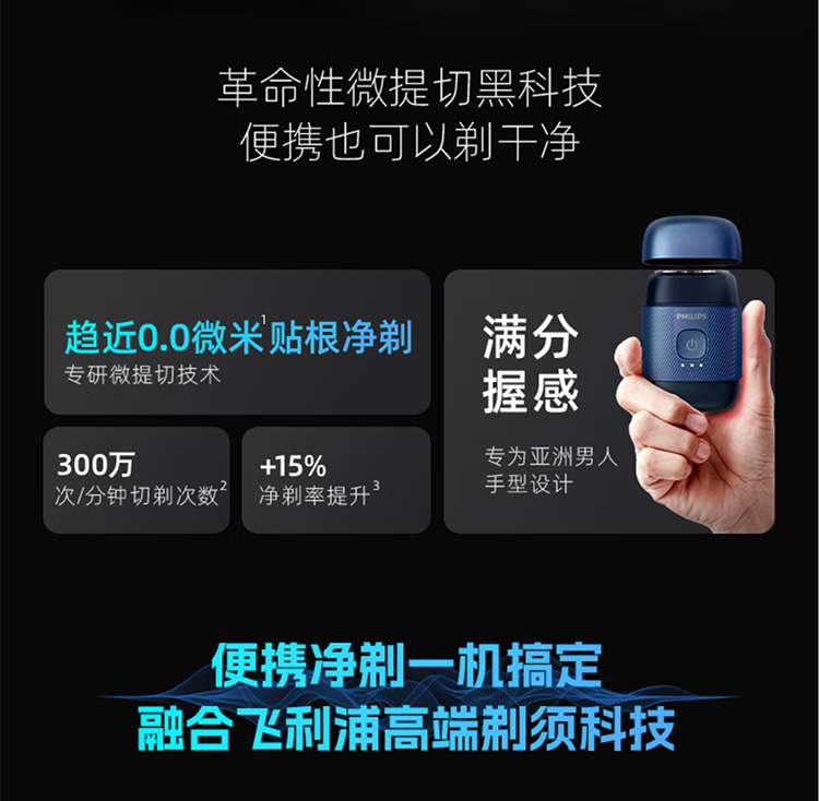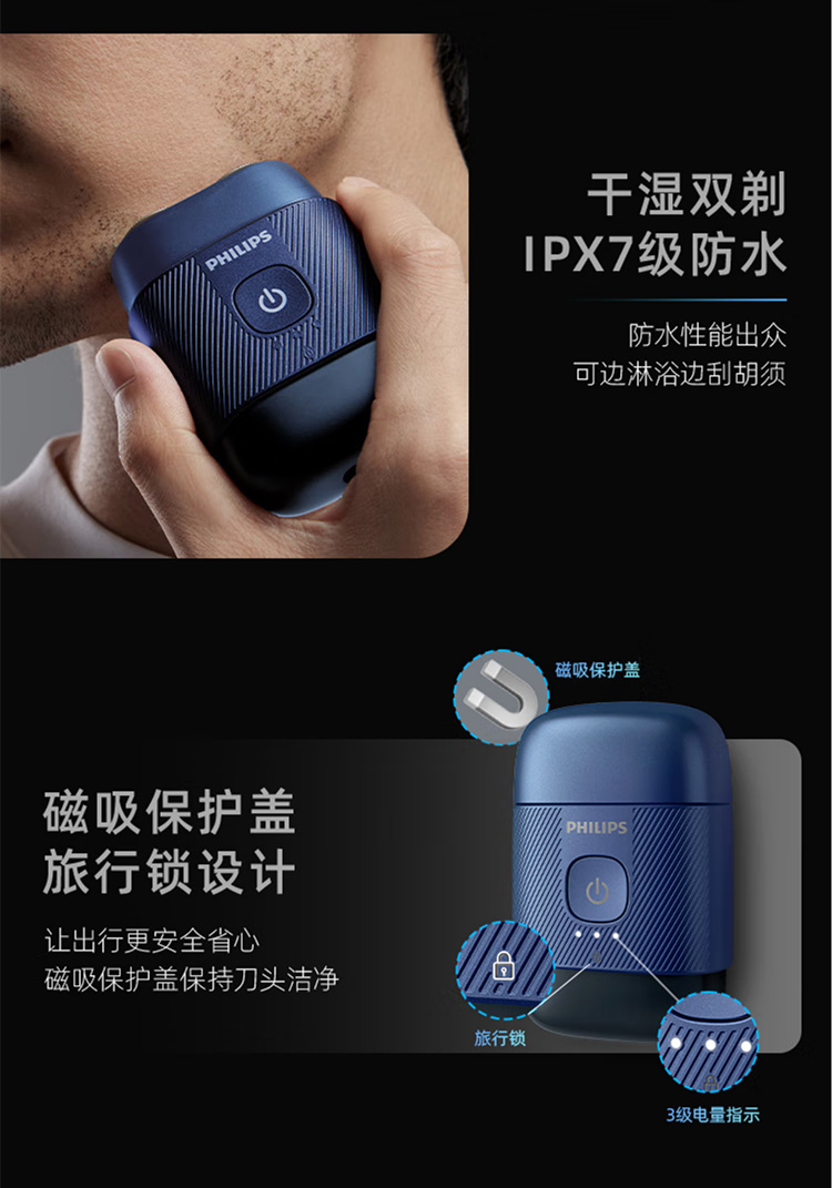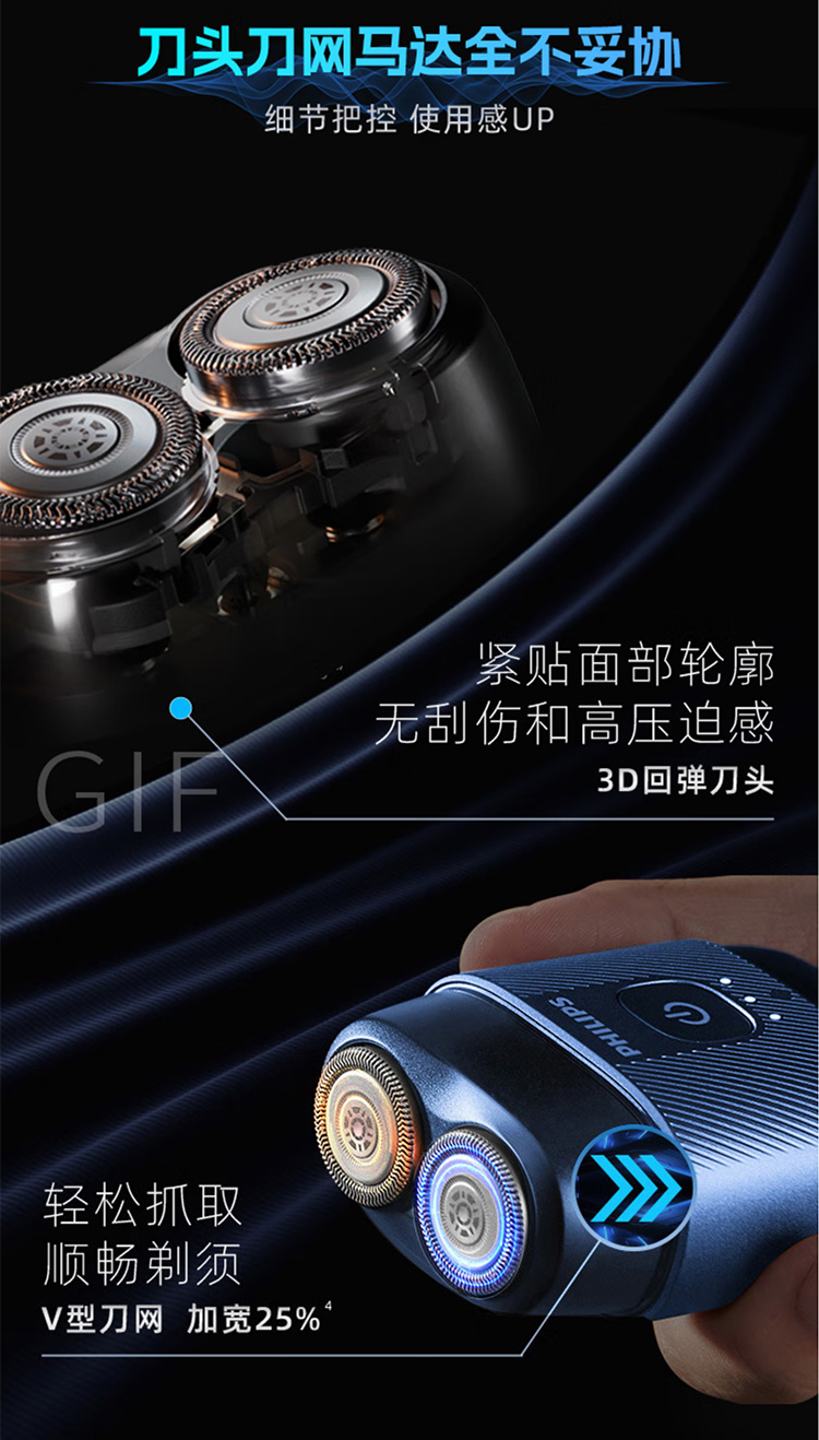 🛒飞利浦PHILIPS剃须刀✅电动鹅卵石便携式刮胡刀胡须🉐全身水洗送男友送长辈生日礼物情人节礼物 蓝宝石S891/05