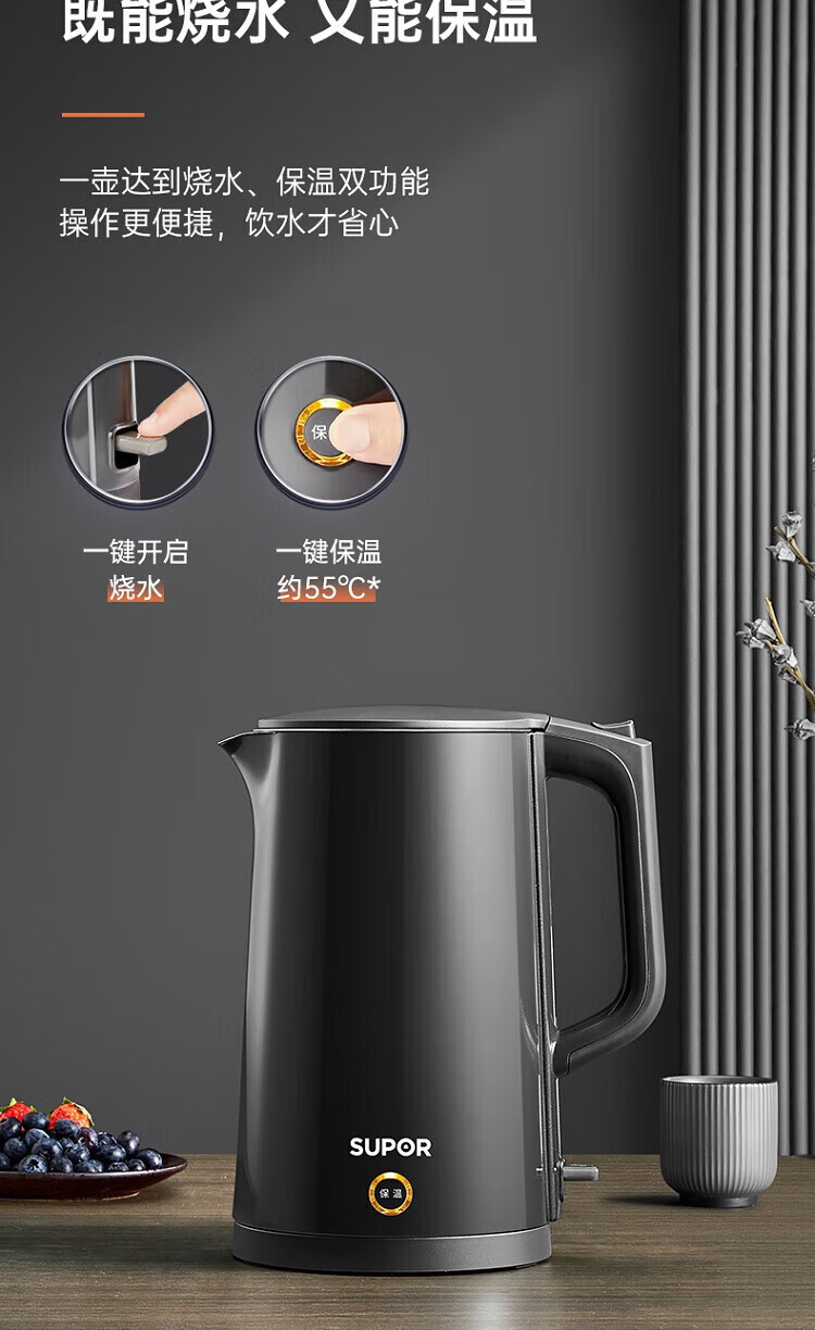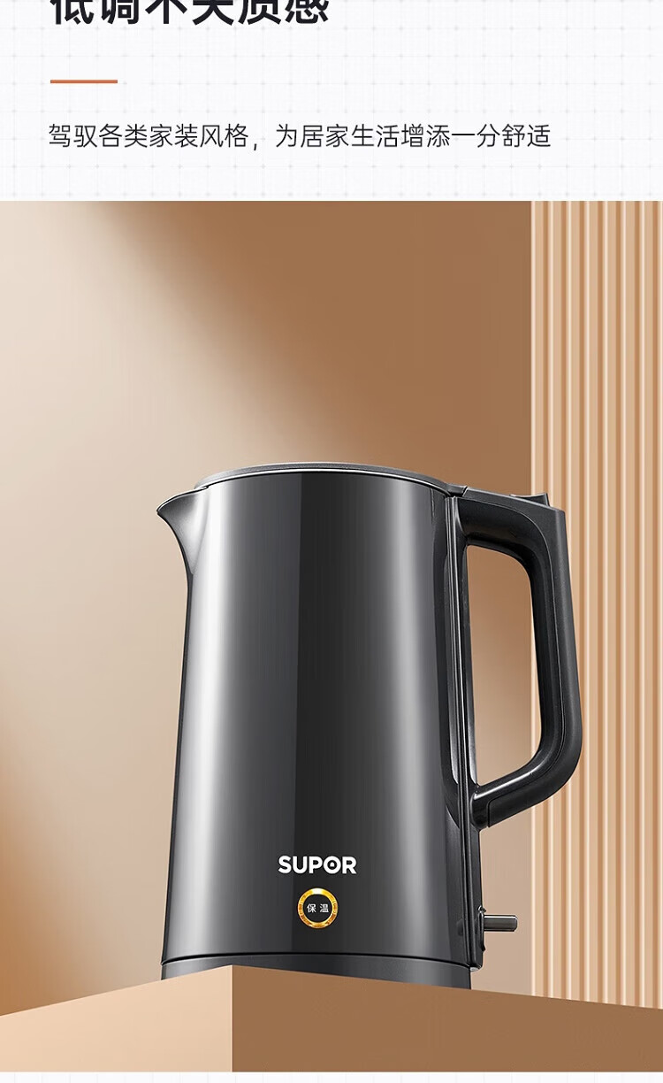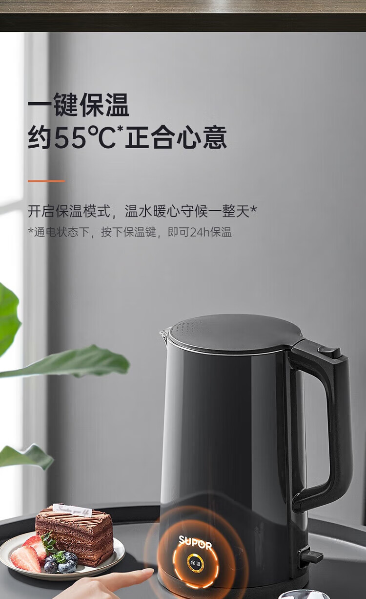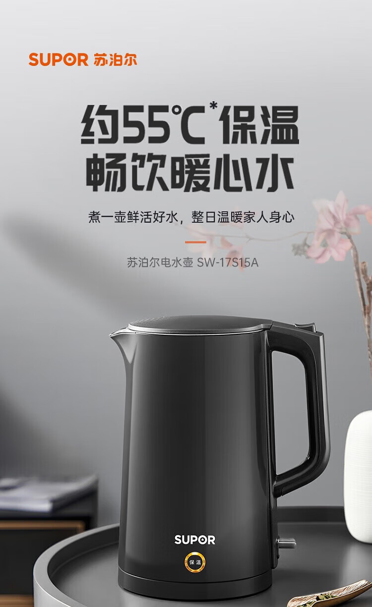 苏泊尔(SUPOR)ZMD安心系列 PTC机械保温 一键保温一整天 双层无缝内胆 1.7L大容量 电水壶SW-17S15A