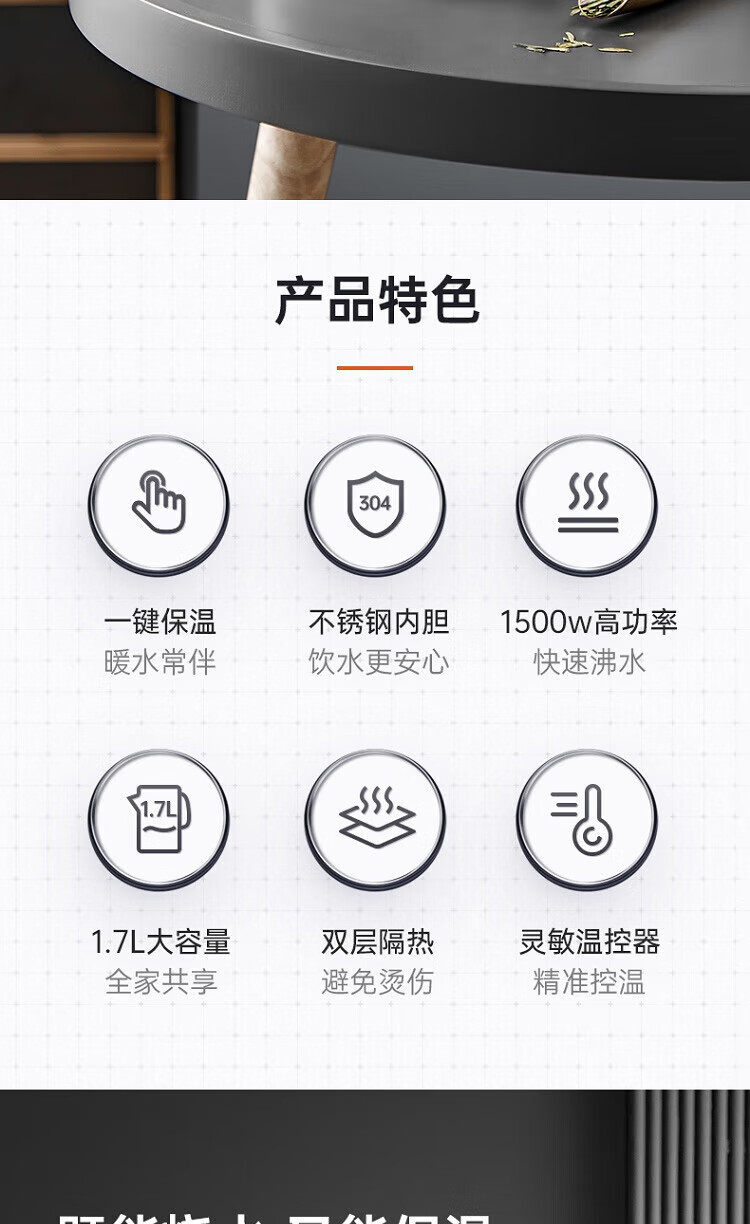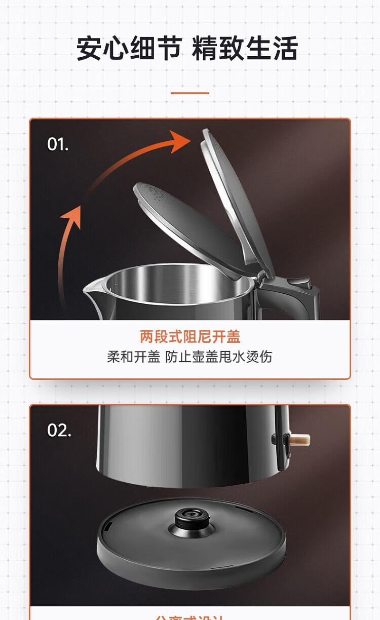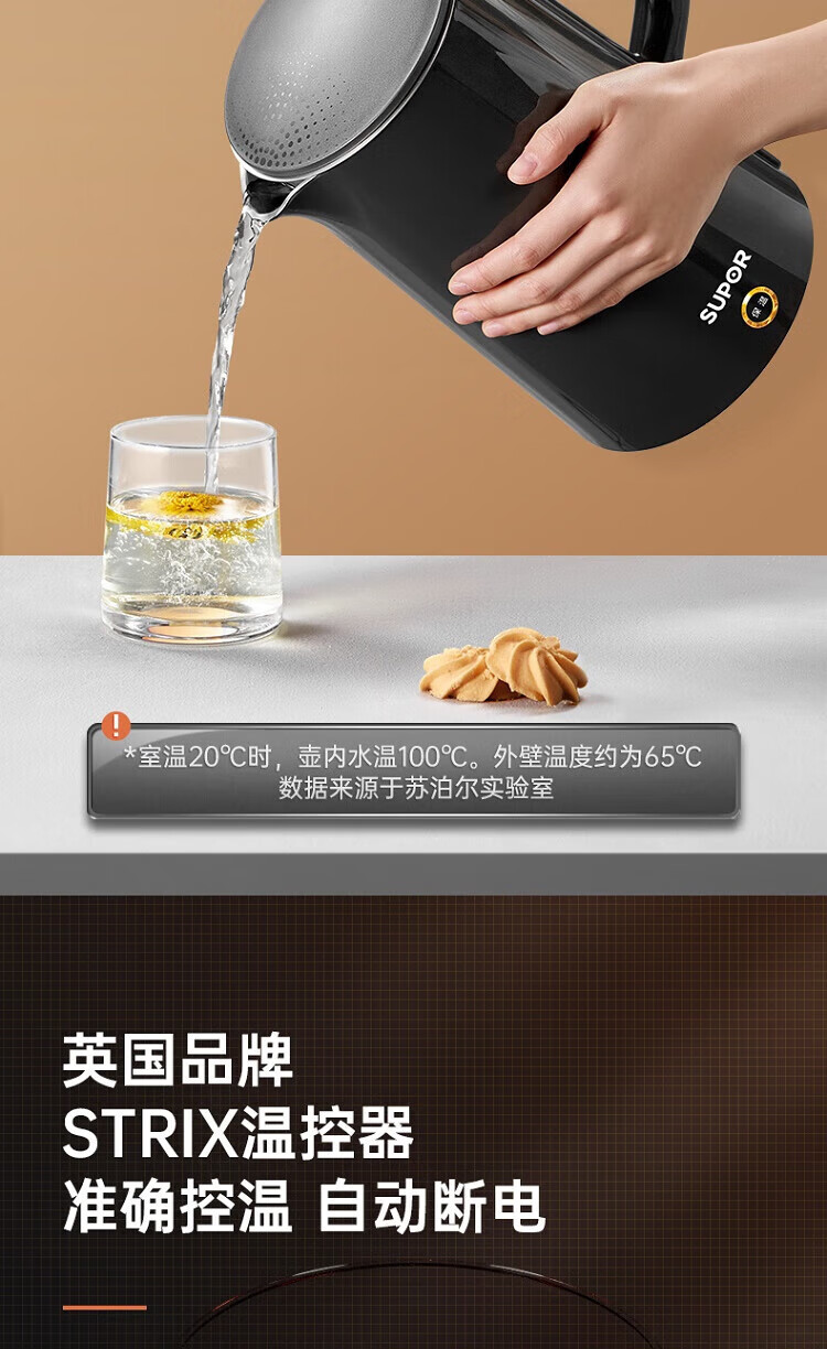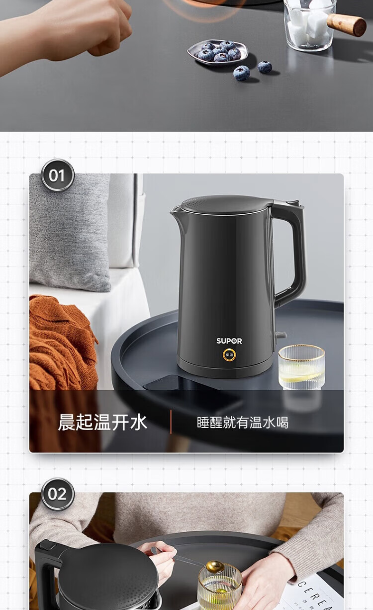 苏泊尔(SUPOR)ZMD安心系列 PTC机械保温 一键保温一整天 双层无缝内胆 1.7L大容量 电水壶SW-17S15A