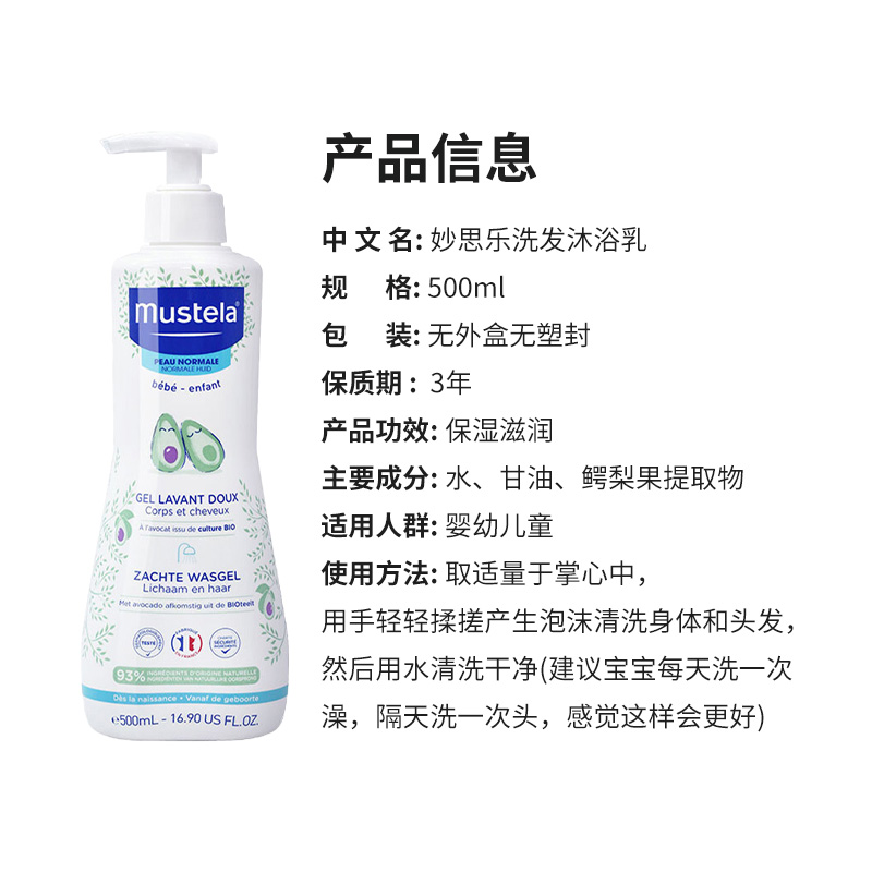 妙思乐Mustela沐浴露洗护二合一500ml