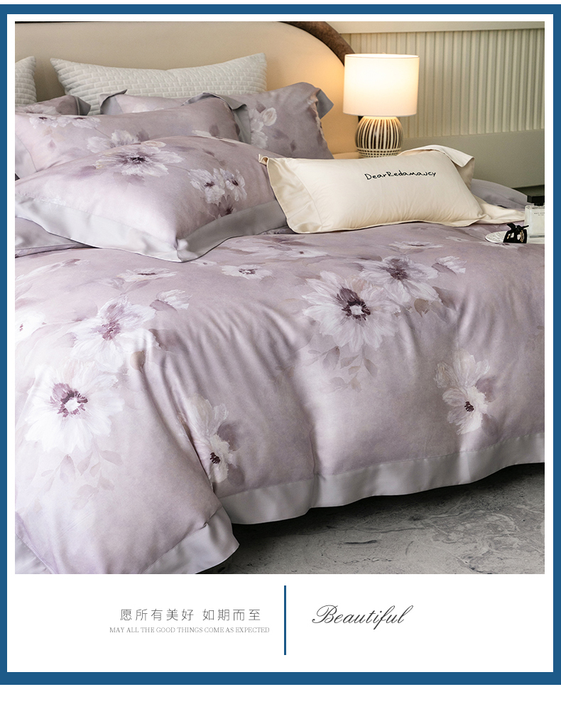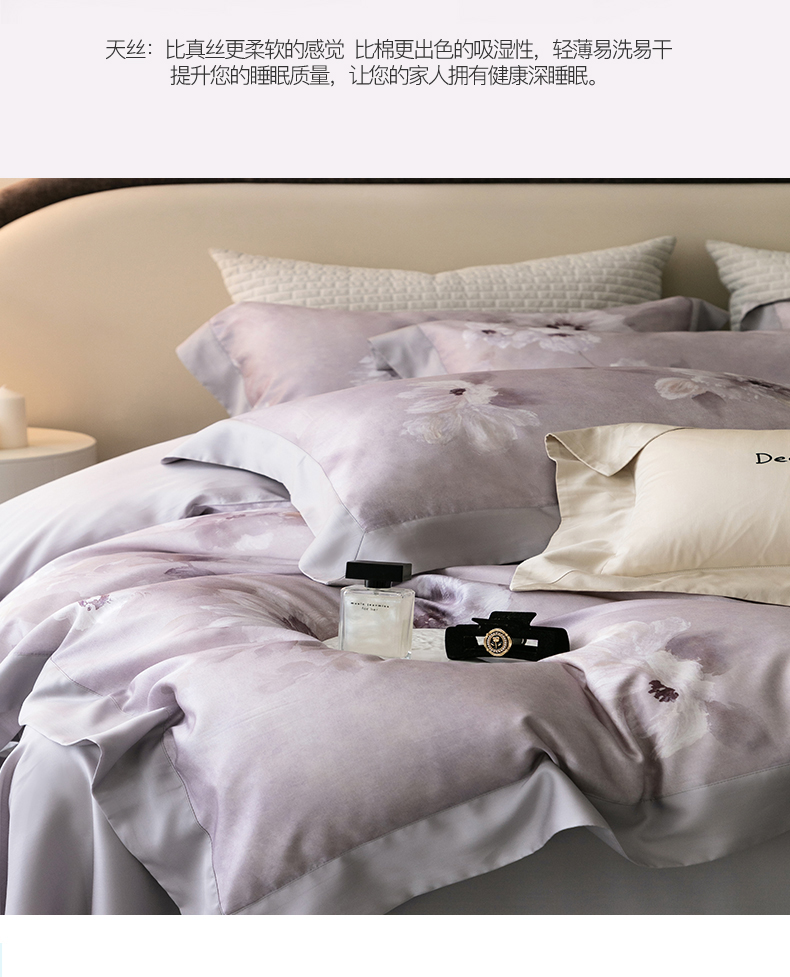 自然醒60支奥地利进口LF级天丝印花四件套100%莱赛尔床单被套枕套床上用品夏季金太阳套件礼盒装KY