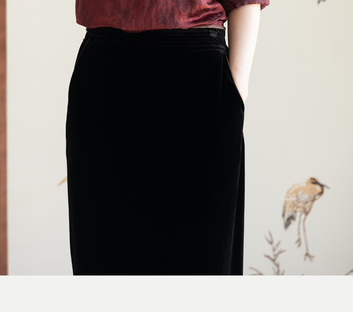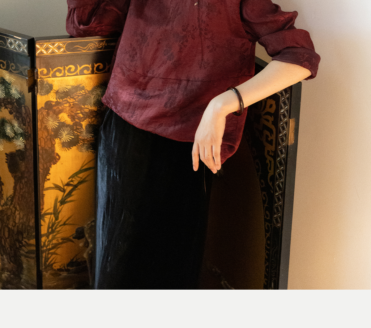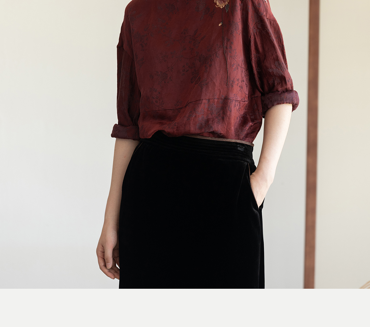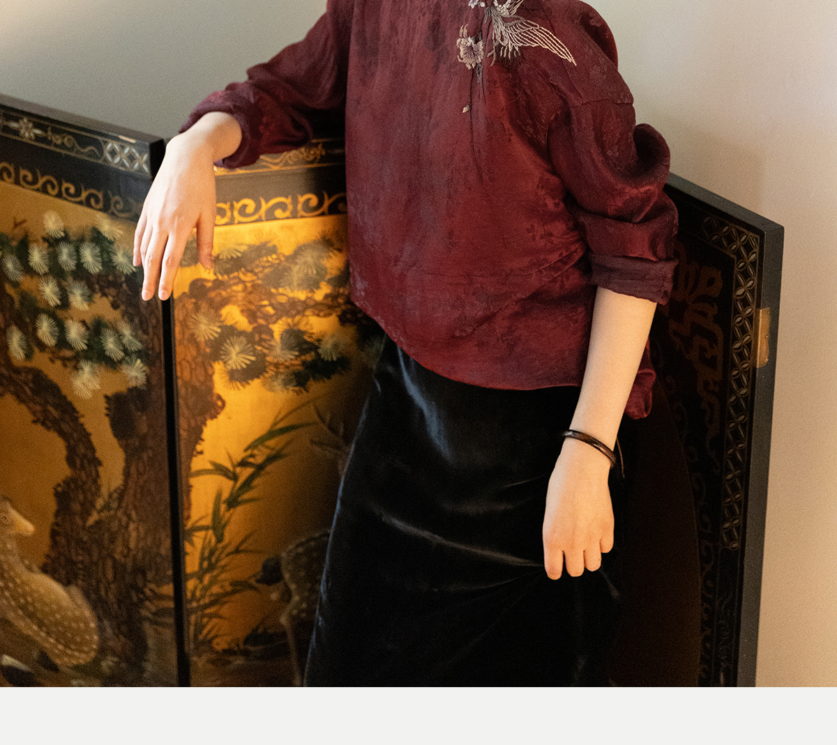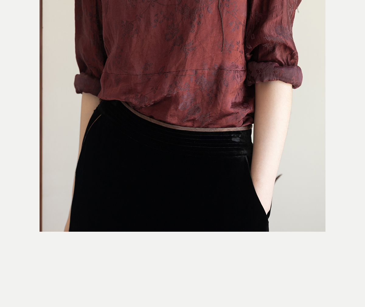 牧衣游原创 丝麻提花手工刺绣套头衫秋拼接东方复古红色上衣 尽染