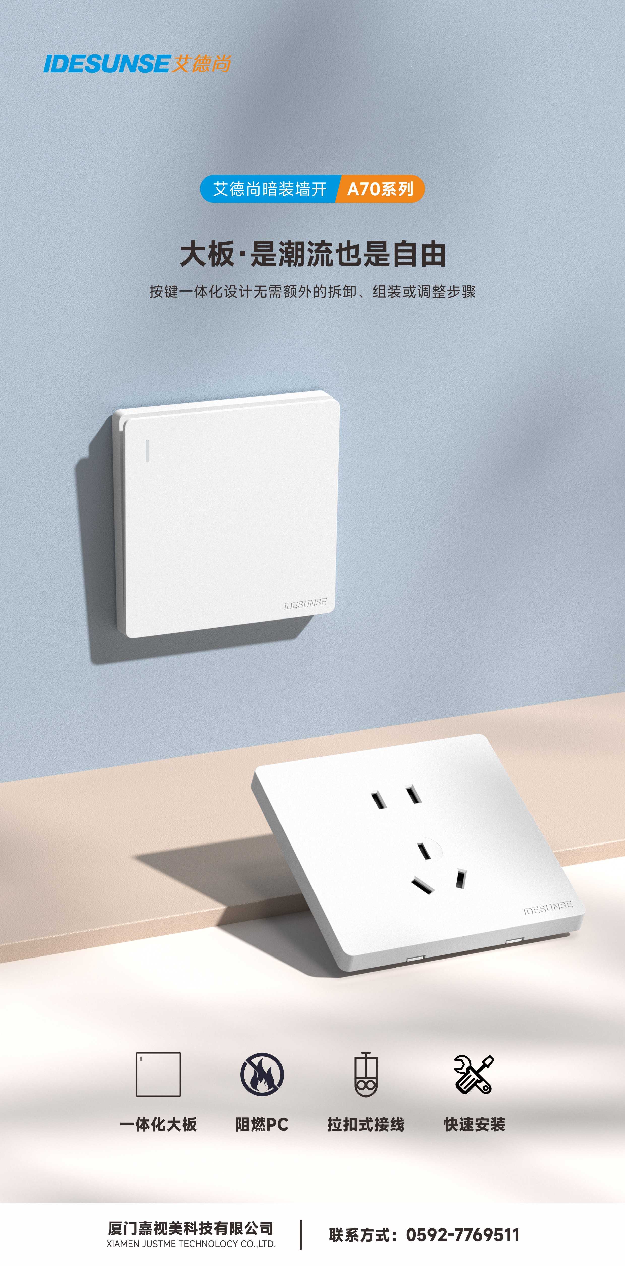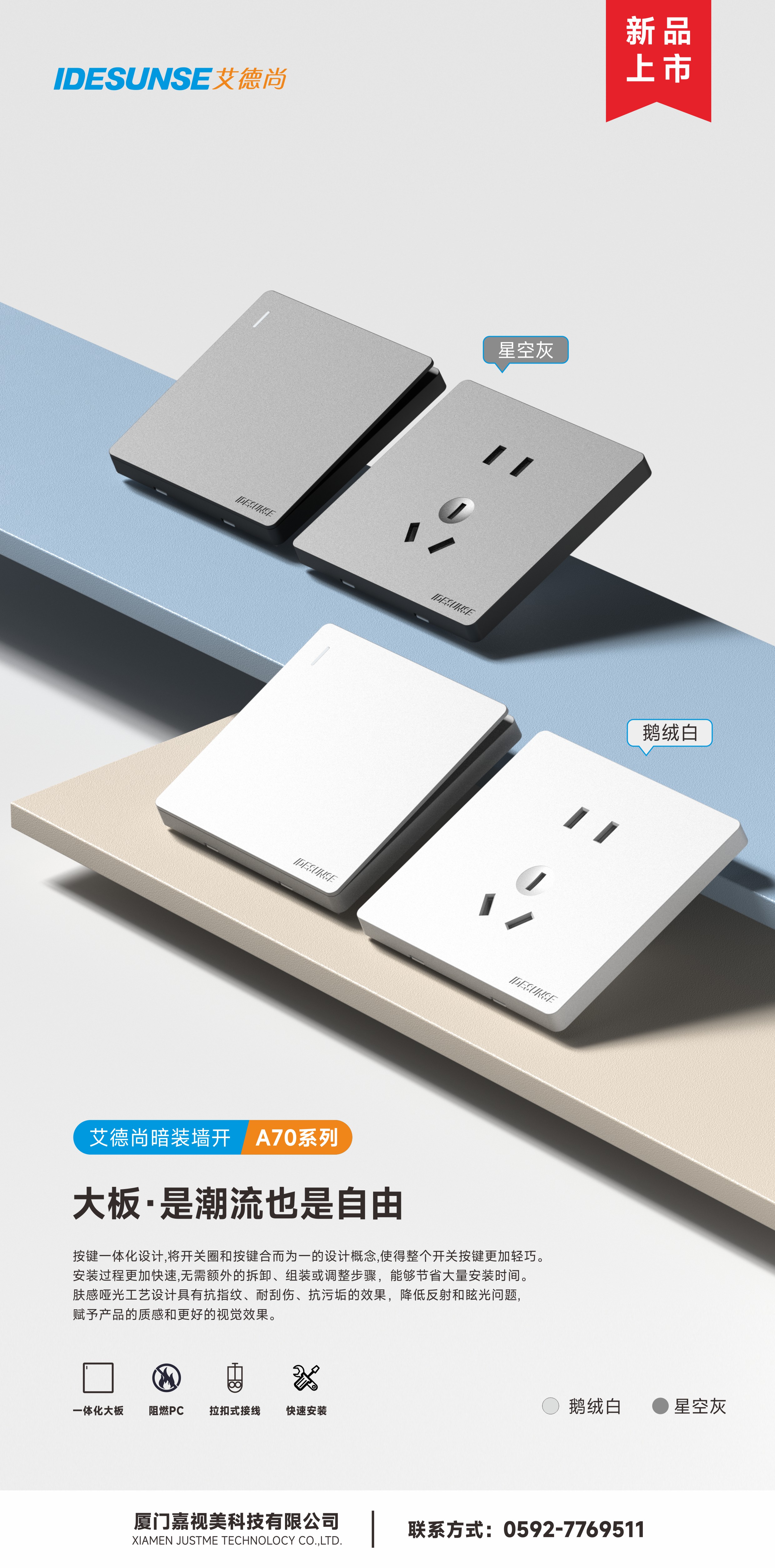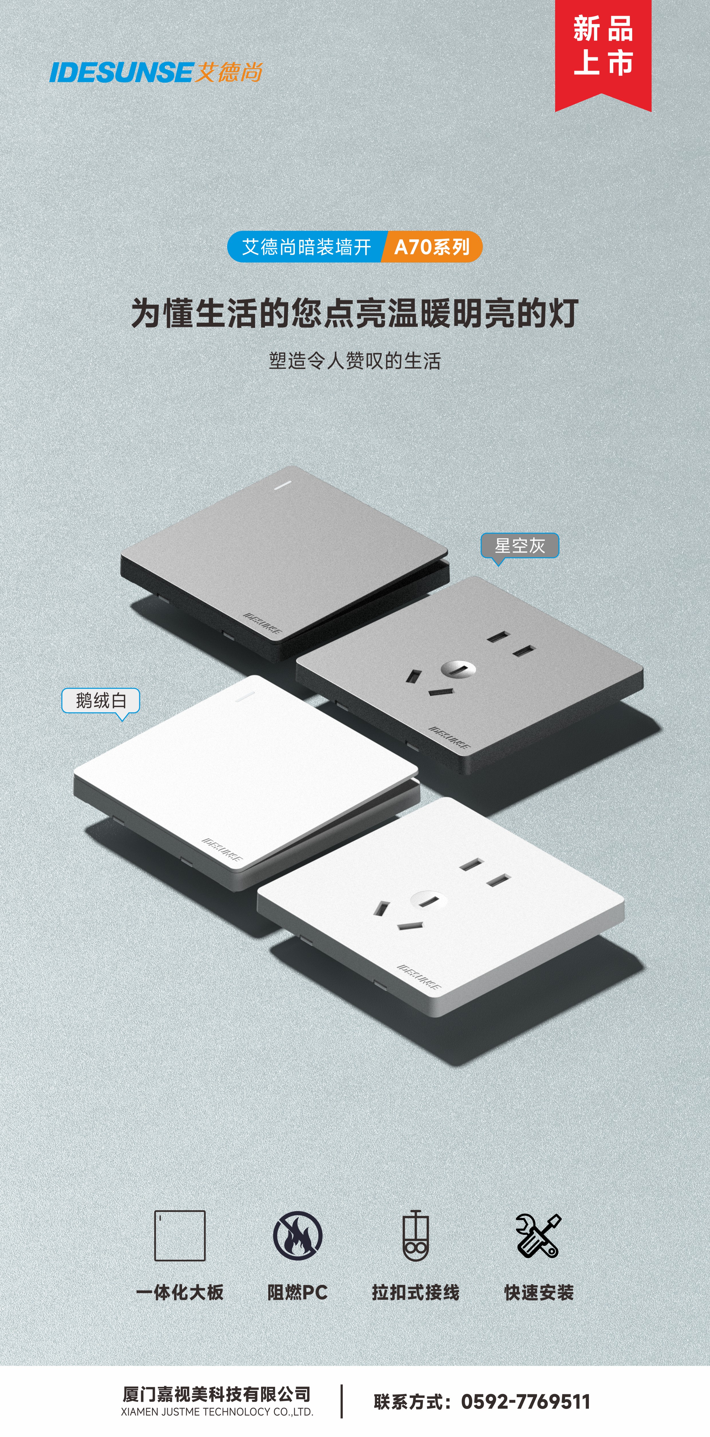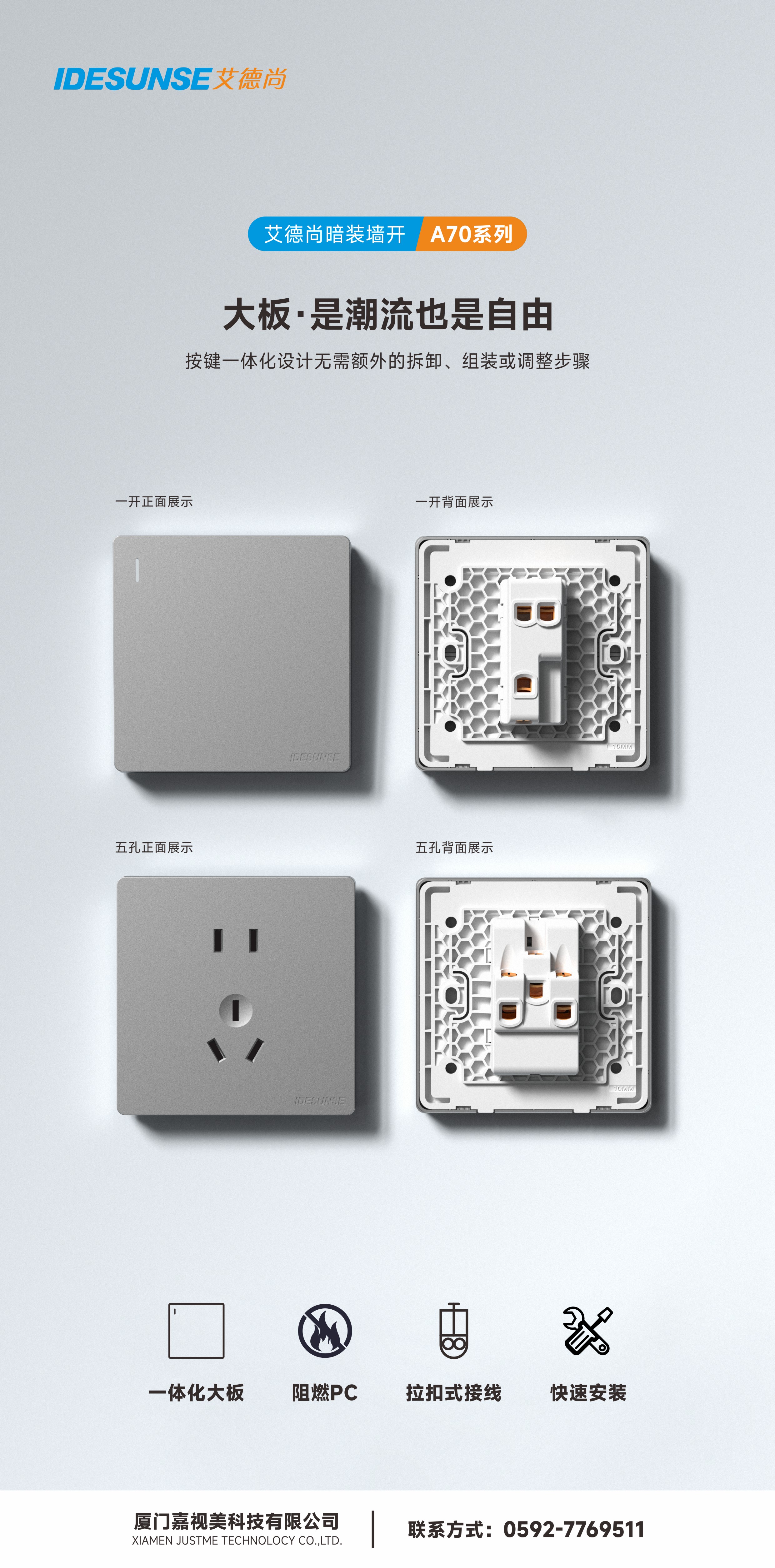 艾德尚A70灰系列墙开插座