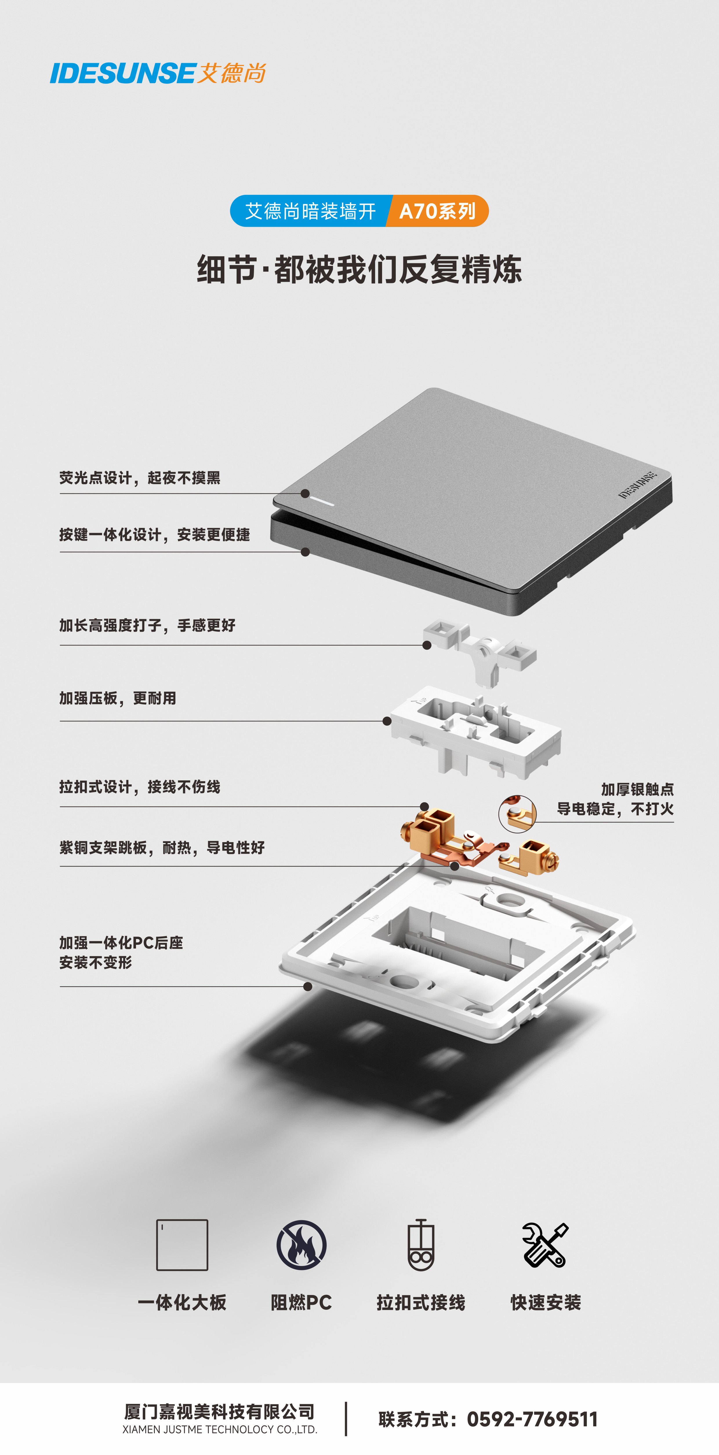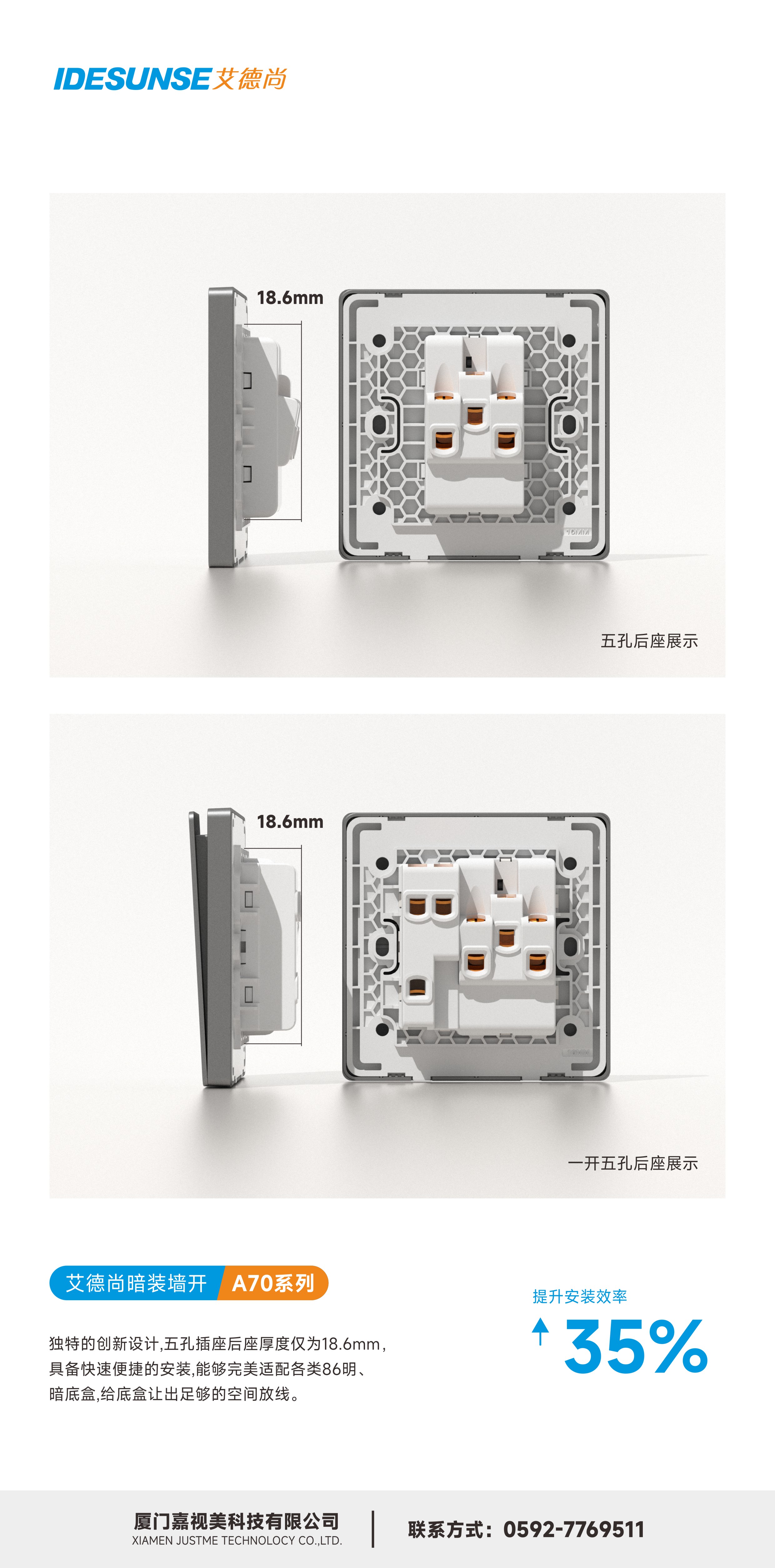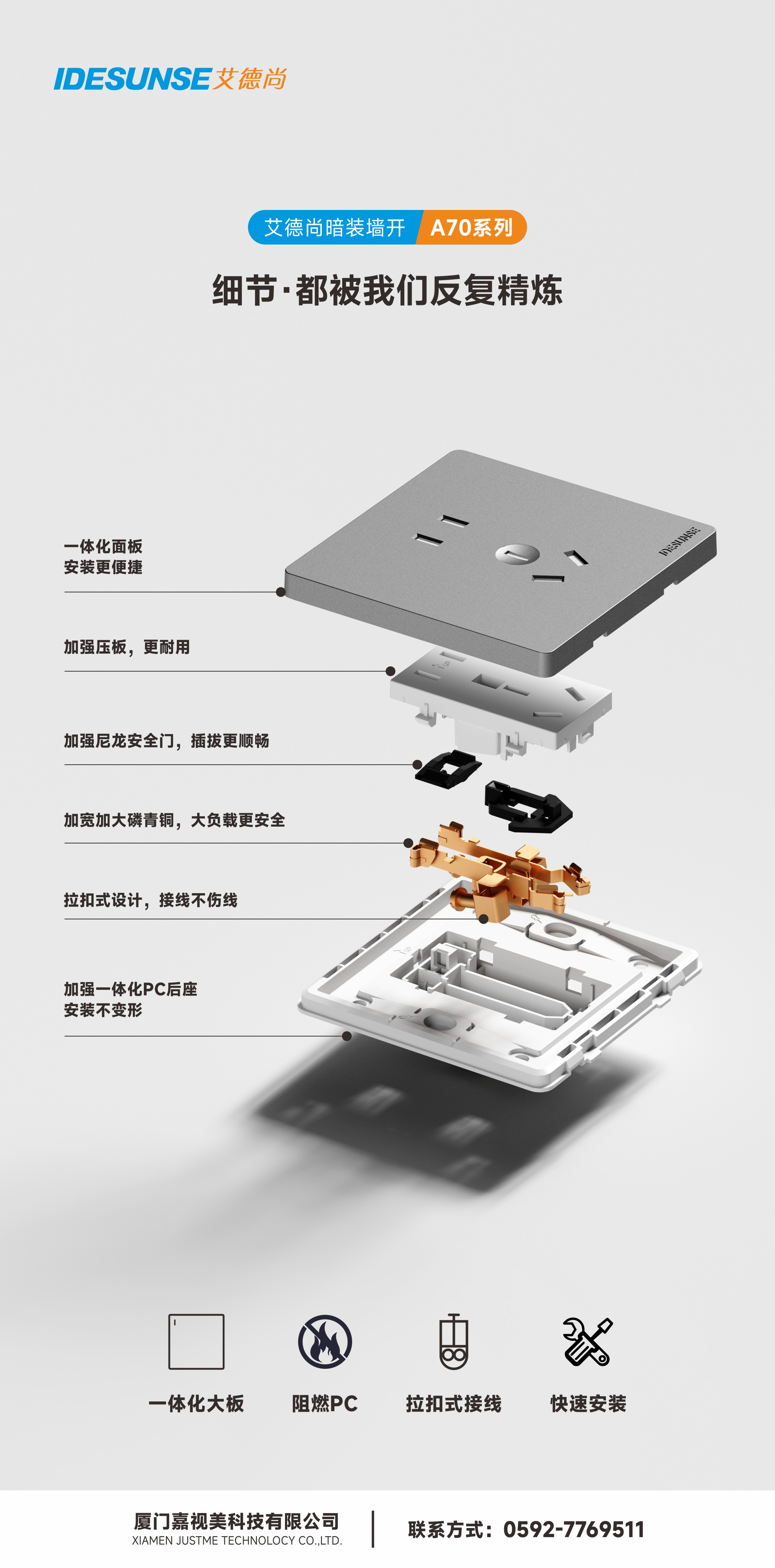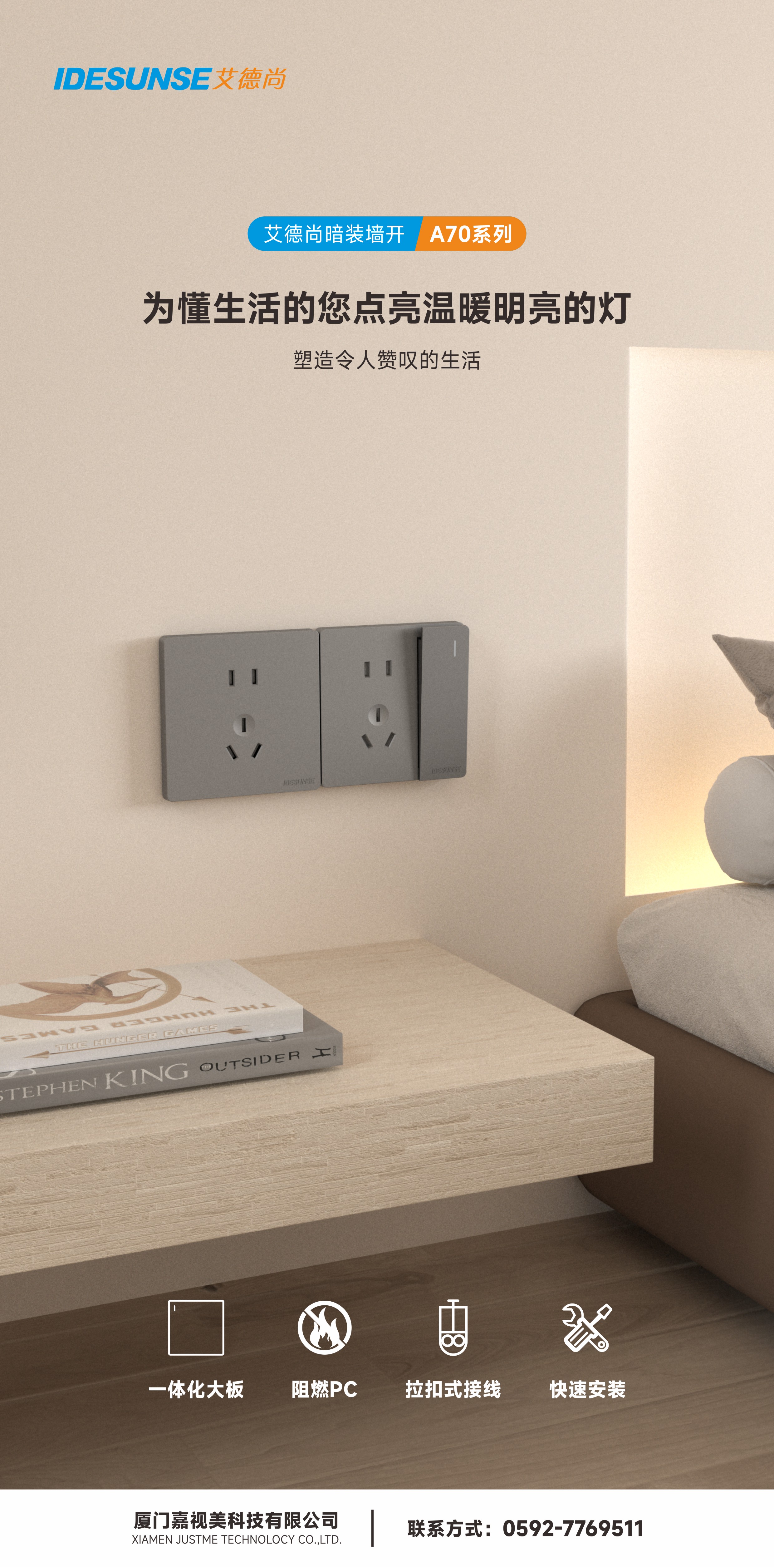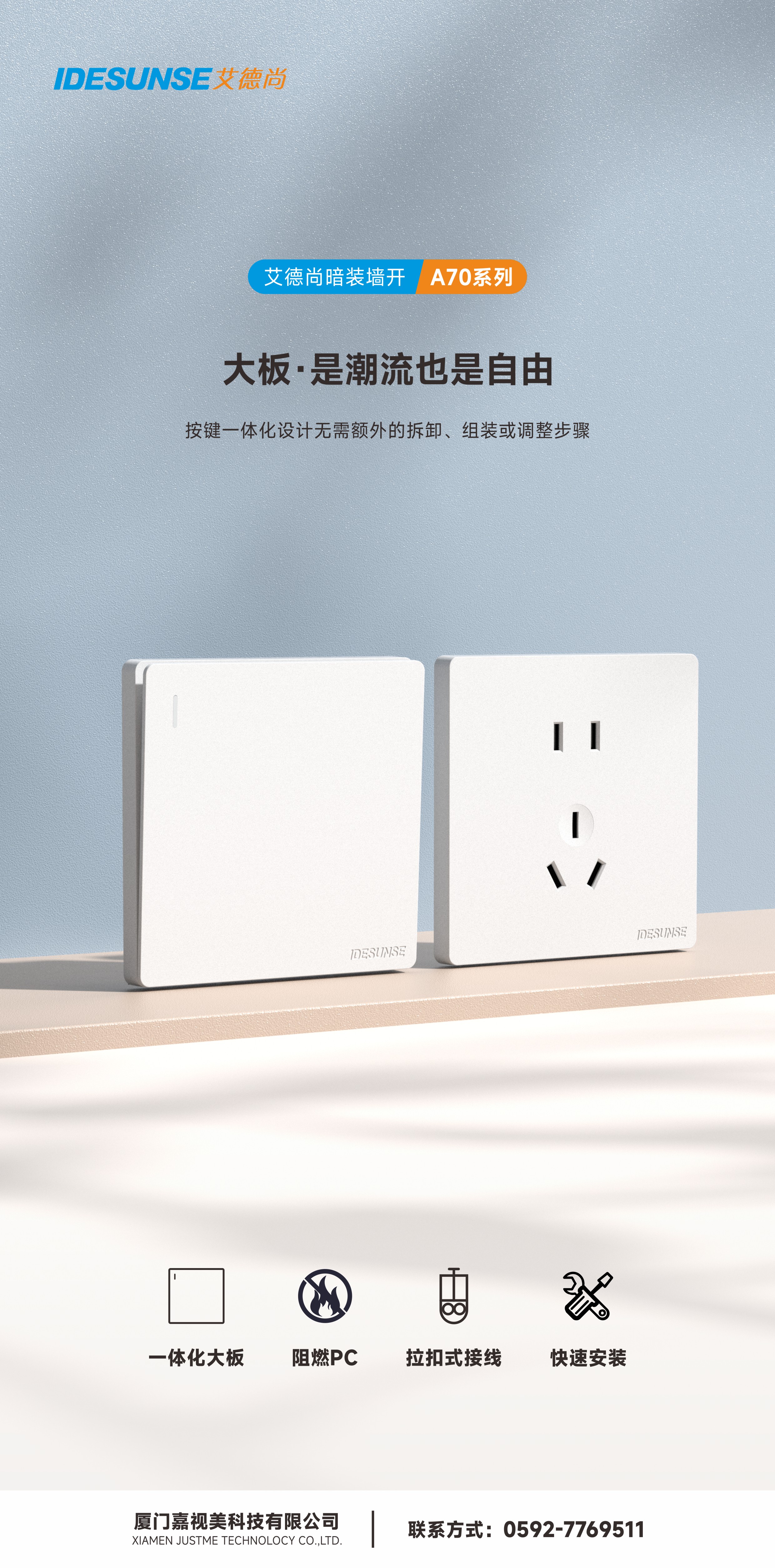 艾德尚A70灰系列墙开插座