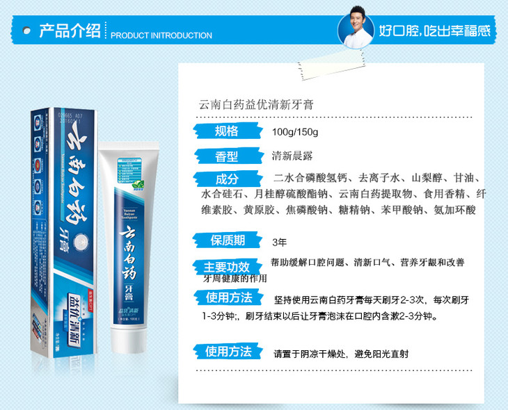 云南白药益优清新牙膏(清新晨露)