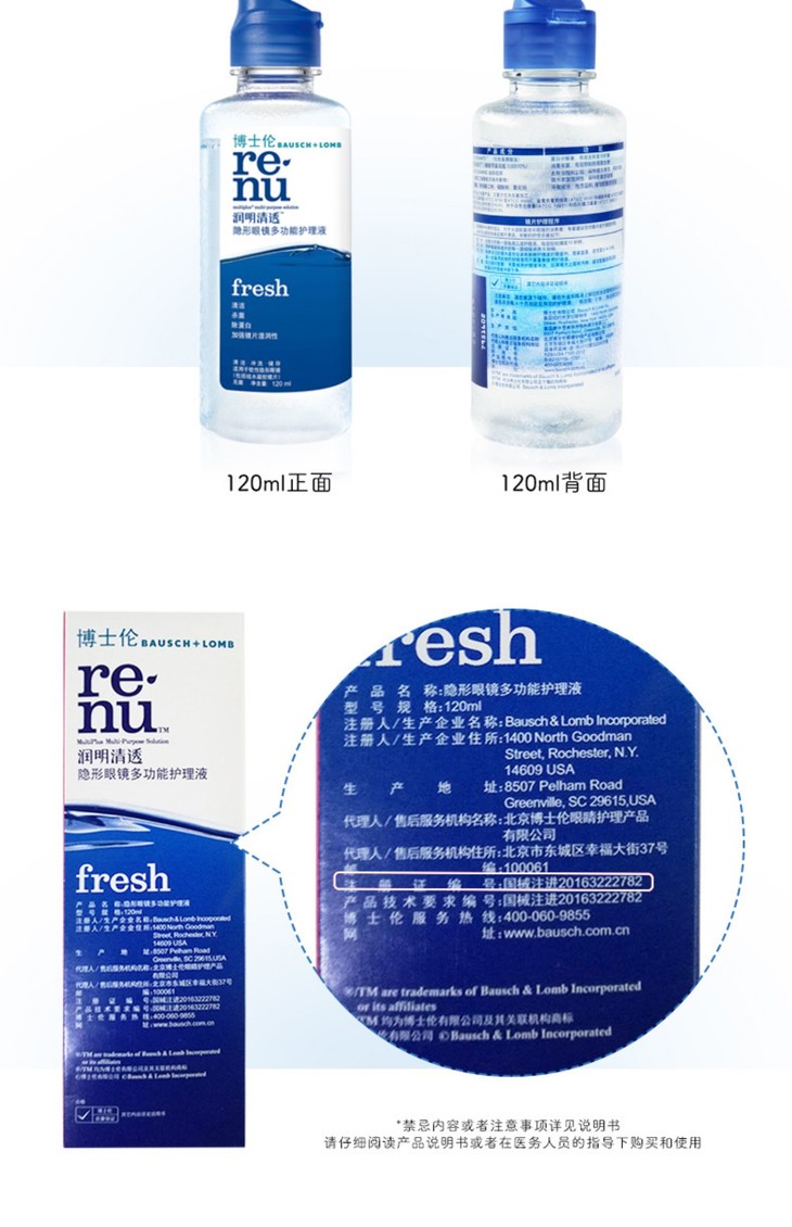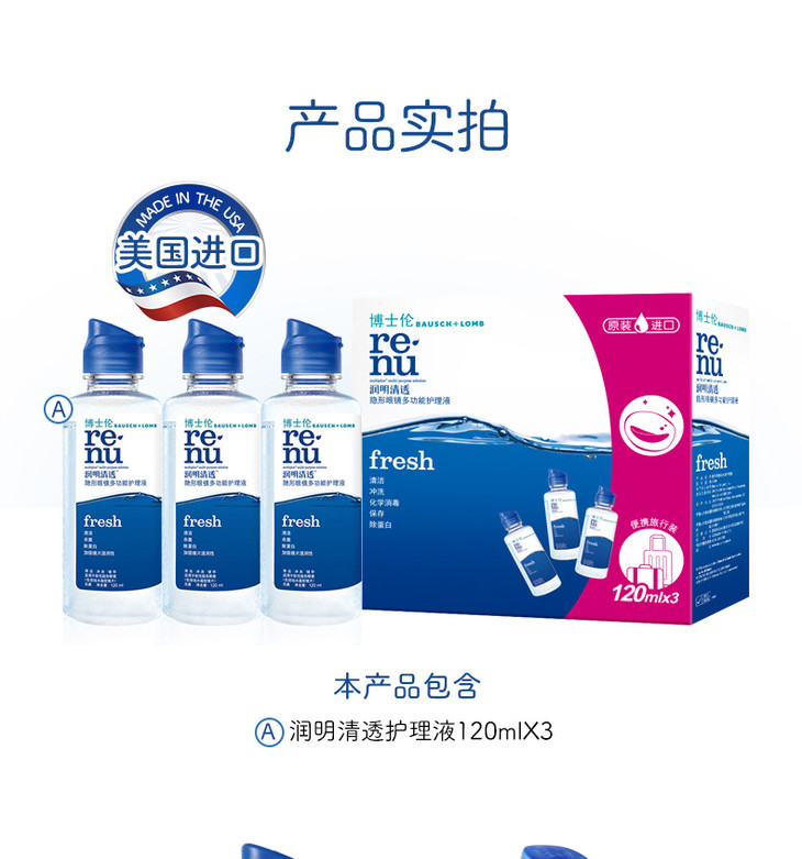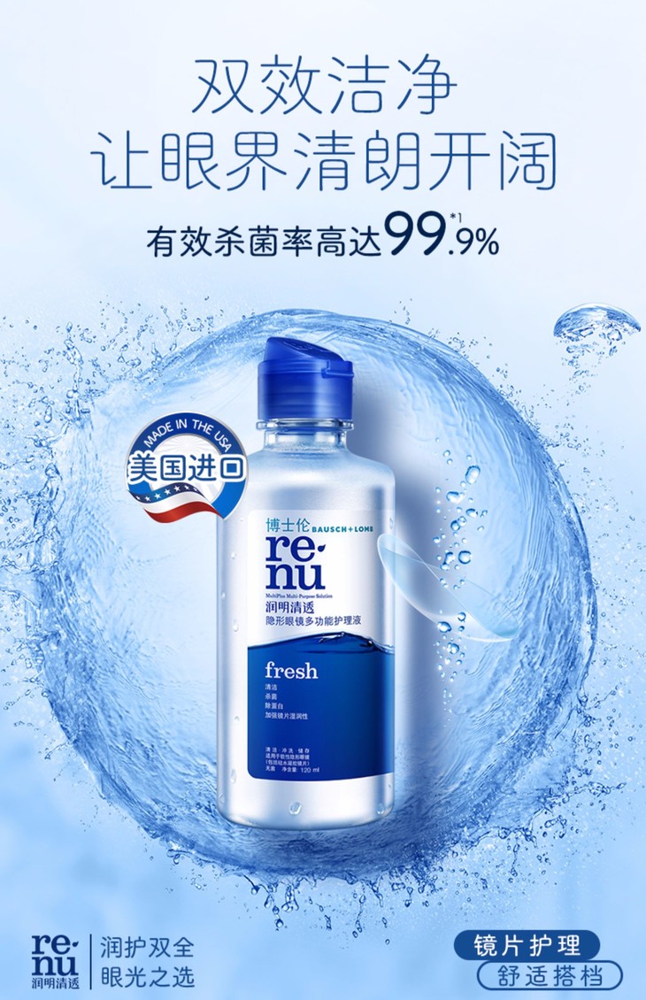 【润明清透系列】博士伦润明清透隐形近视眼镜美瞳彩色隐形护理液正品保证