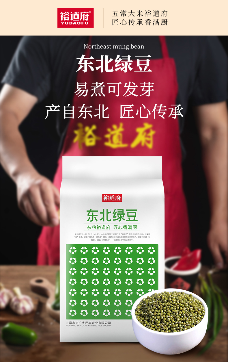 裕道府 东北绿豆、五常红小豆、五常玉米碴双豆消暑套装6斤