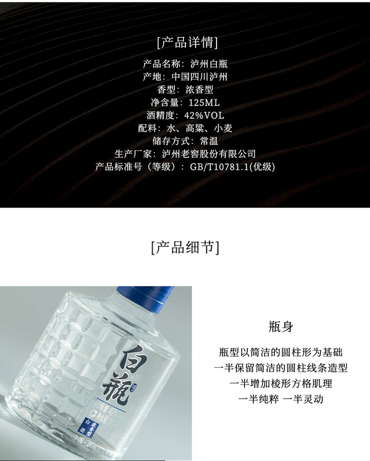 【加价购】42度 泸州白瓶酒 125ml*6 泸州老窖官方旗舰店