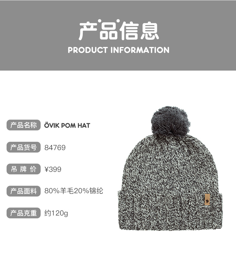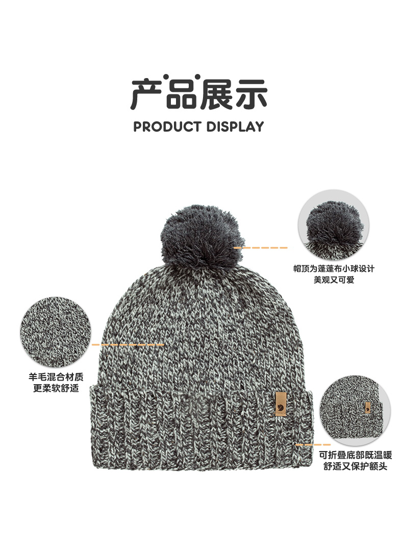 Fjallraven/北极狐户外冬季帽加厚加绒保暖帽子毛球顶84769