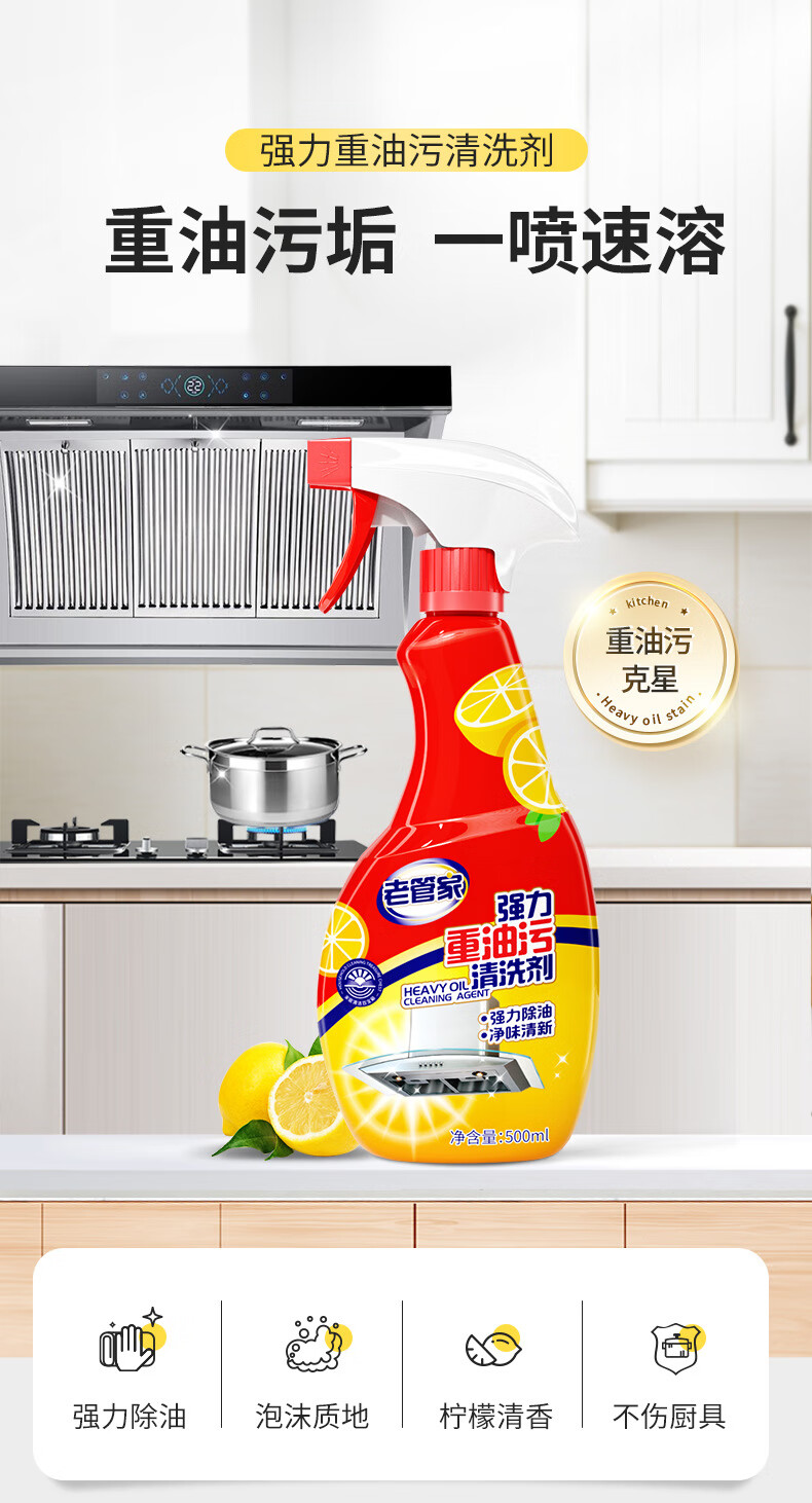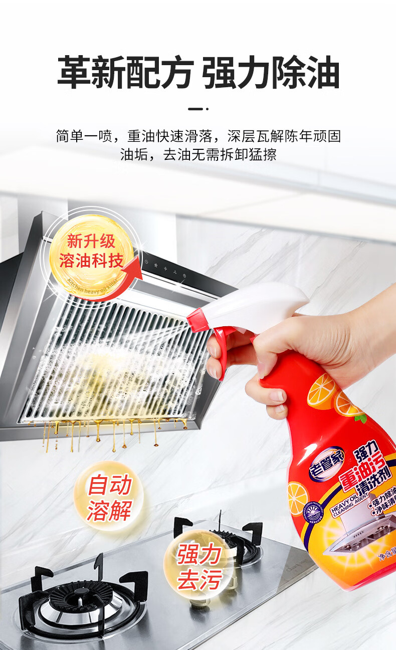 【自营】 老管家 强力重油污清洗剂 (强力升级款 ) 双效喷头 强力除油 500ml/瓶