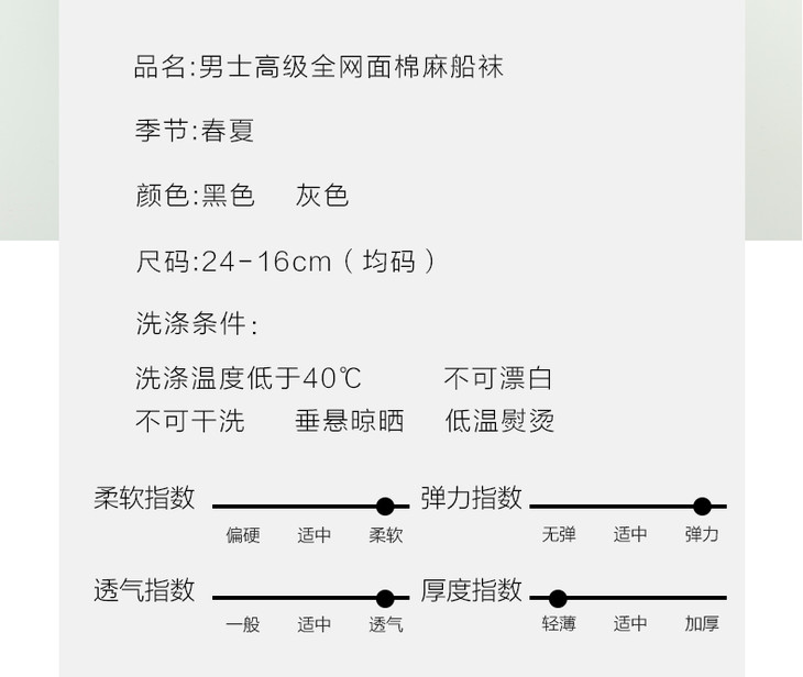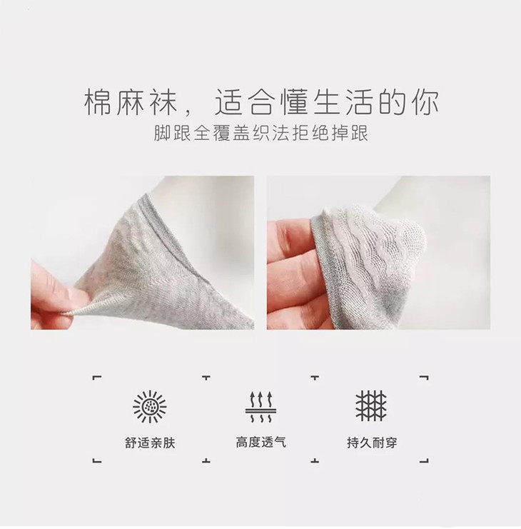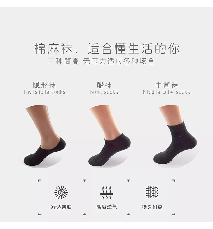 【49元6双】男士高级棉麻全网面船袜夏季短袜透气隐形浅口男袜【2双装 911312】