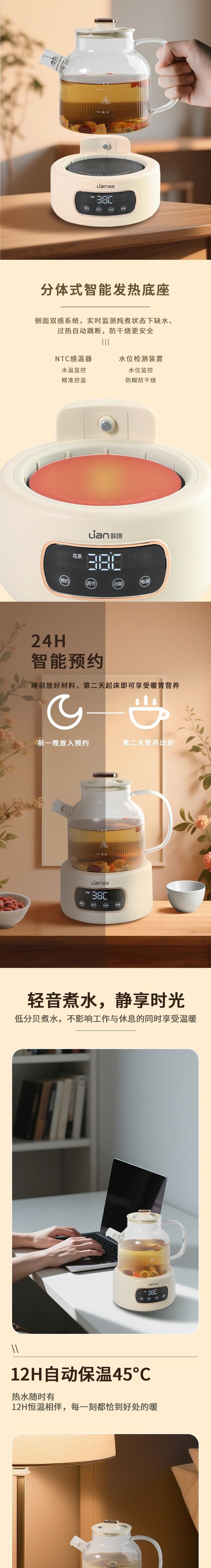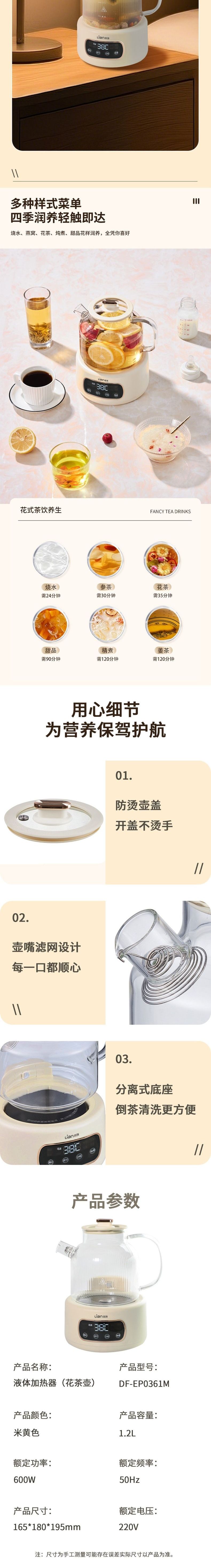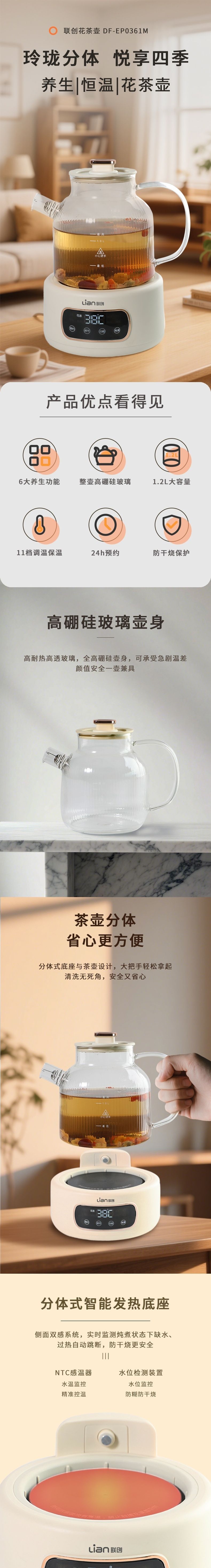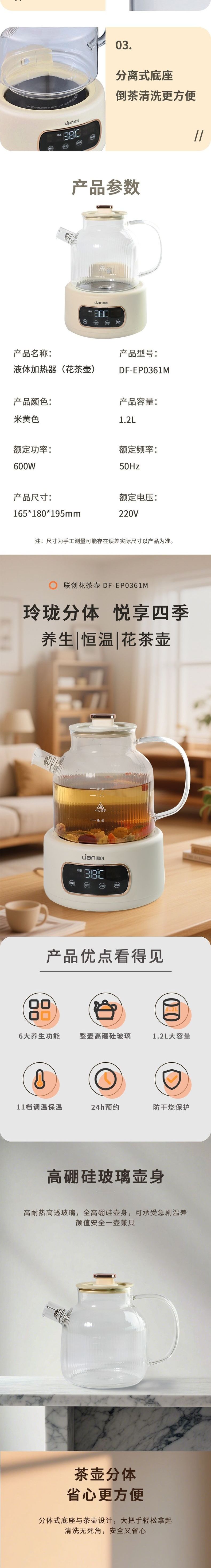 联创 花茶壶 DF-EP0361M 玻璃煮茶器养生烧水壶小型电陶炉