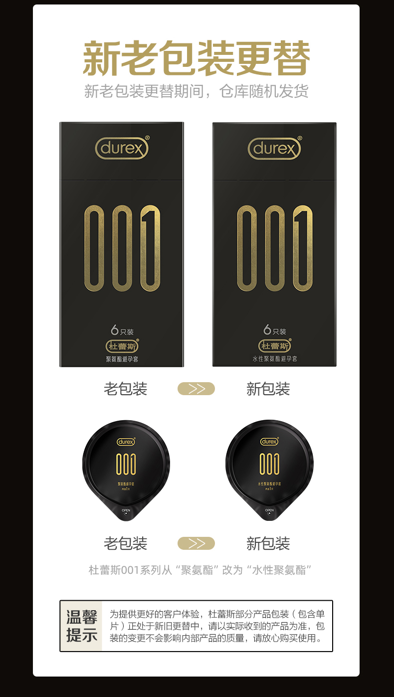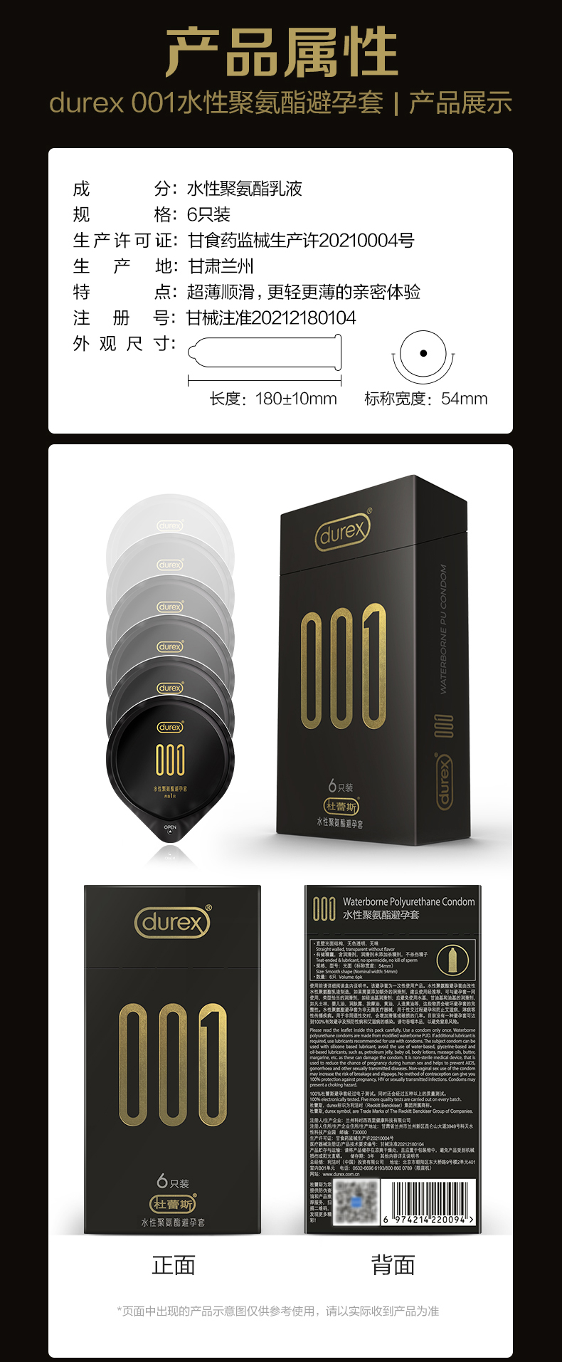 杜蕾斯 001聚氨酯 超薄避孕套 3/6只装