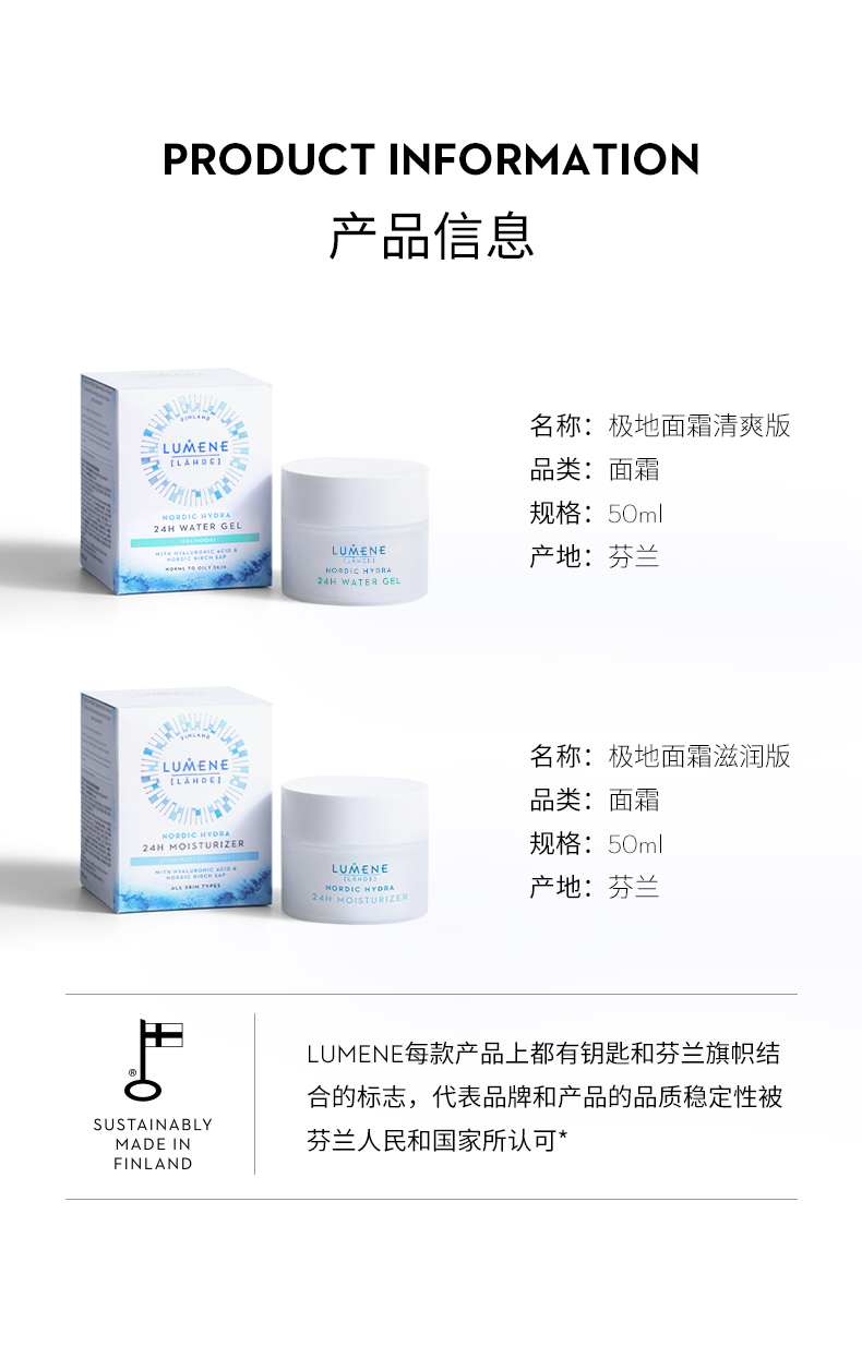 极地冰泉系列是LUMENE最基础销量最大的的一个系列,主打保湿。这也是我在孕期和哺乳期天天在用的系列,成分简单,涂在皮肤上感觉很温和,舒缓,保湿效果非常棒,真的可以做到急救补水,解决皮肤极度干燥的问题。