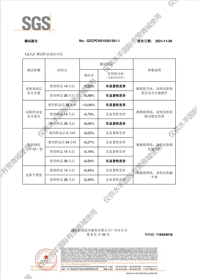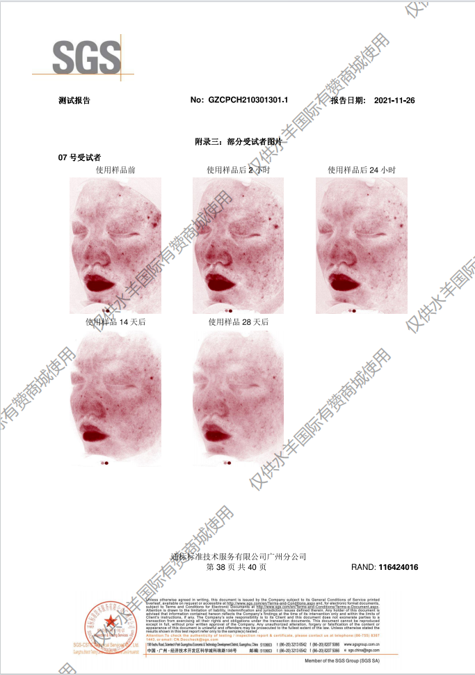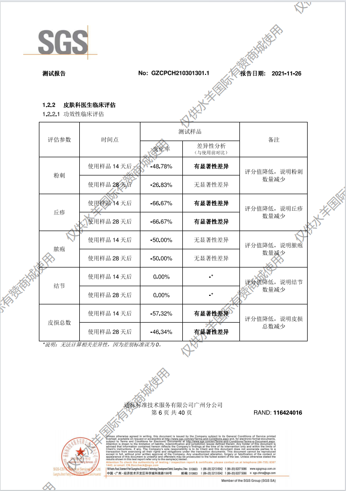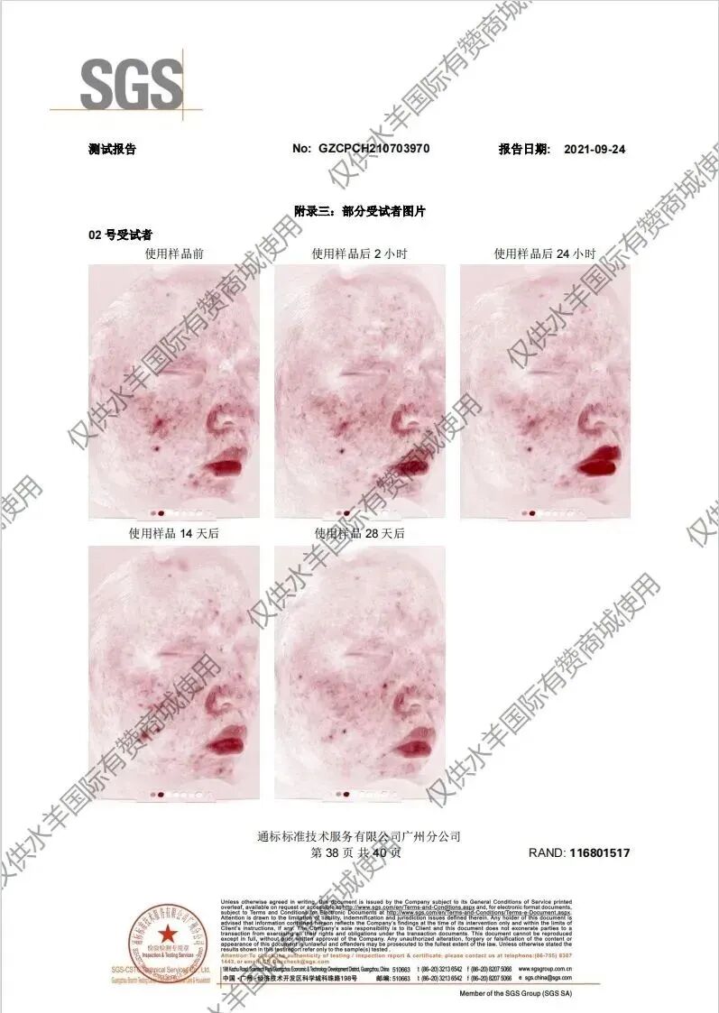 检测结果显示:24小时长效保湿,长期使用粉刺、丘疹、脓疱等问题均有显著改善。