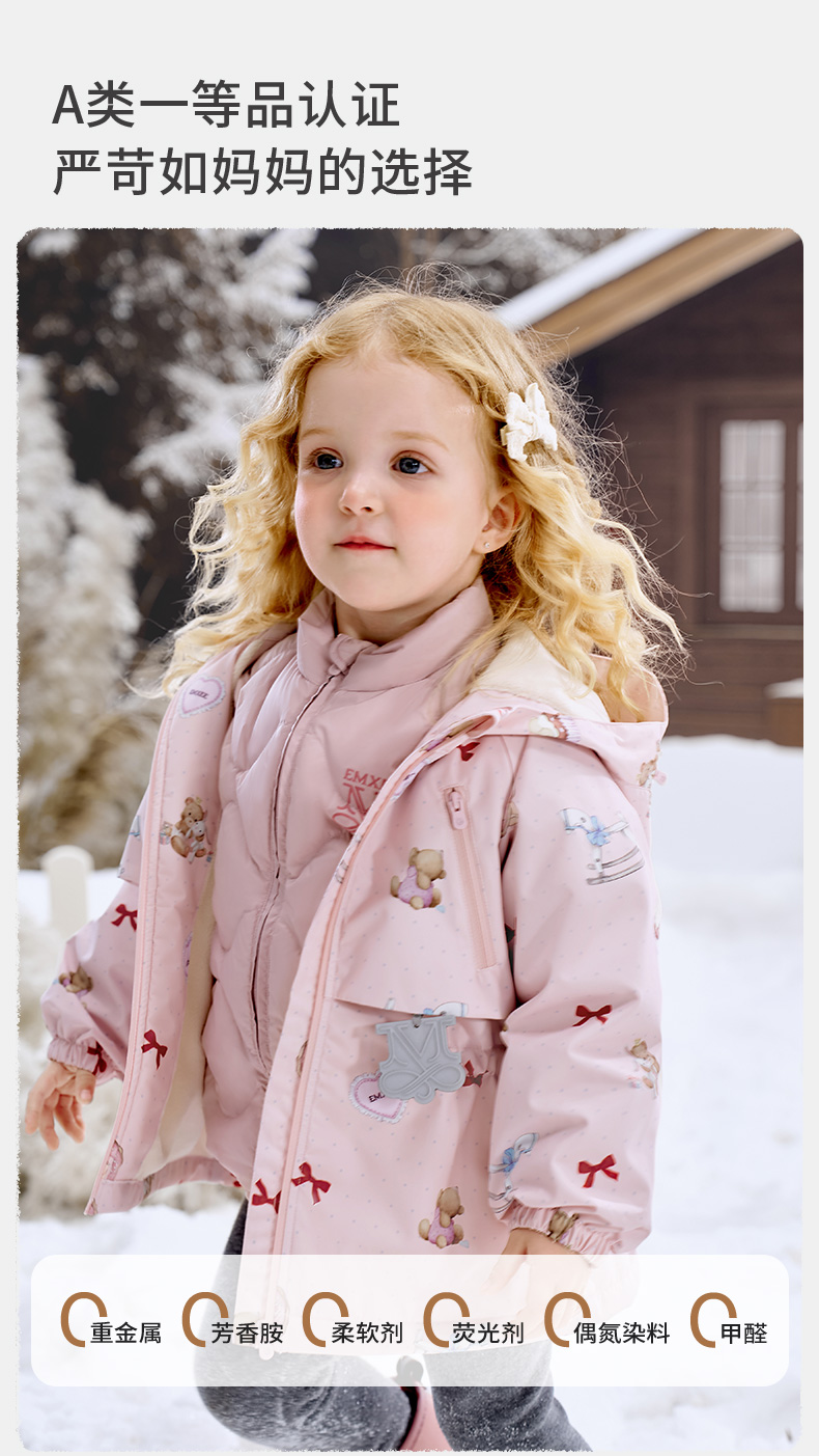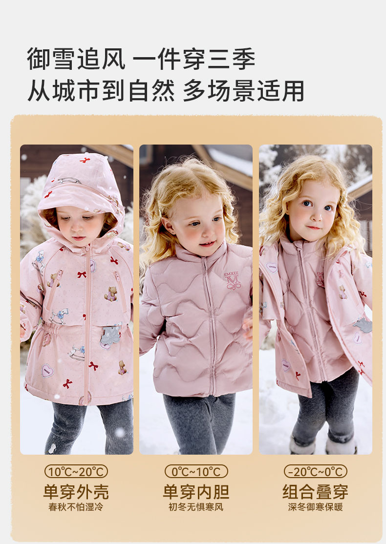 【宝宝服饰】嫚熙童装儿童三合一羽绒服保暖加厚女宝95鹅绒三防外出女童外套冬