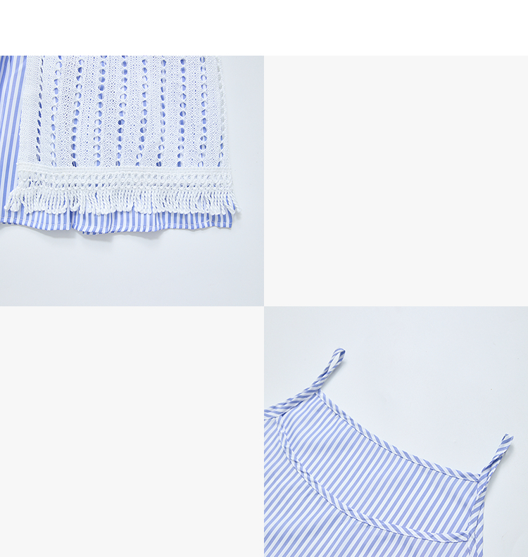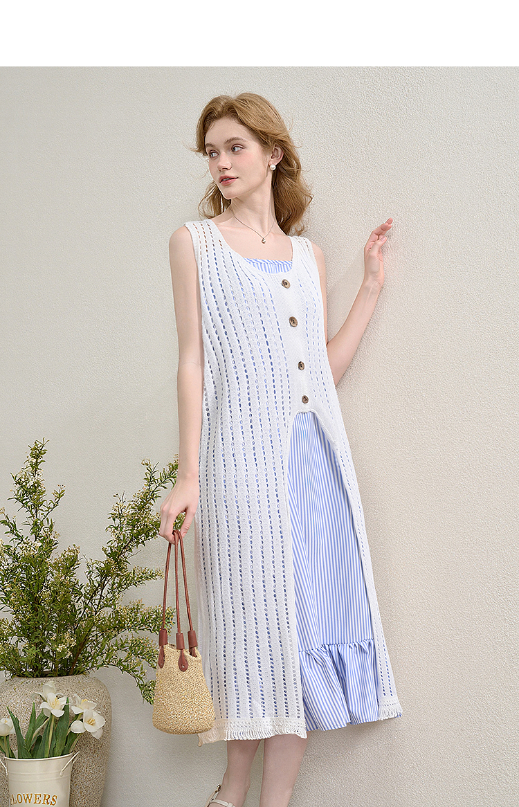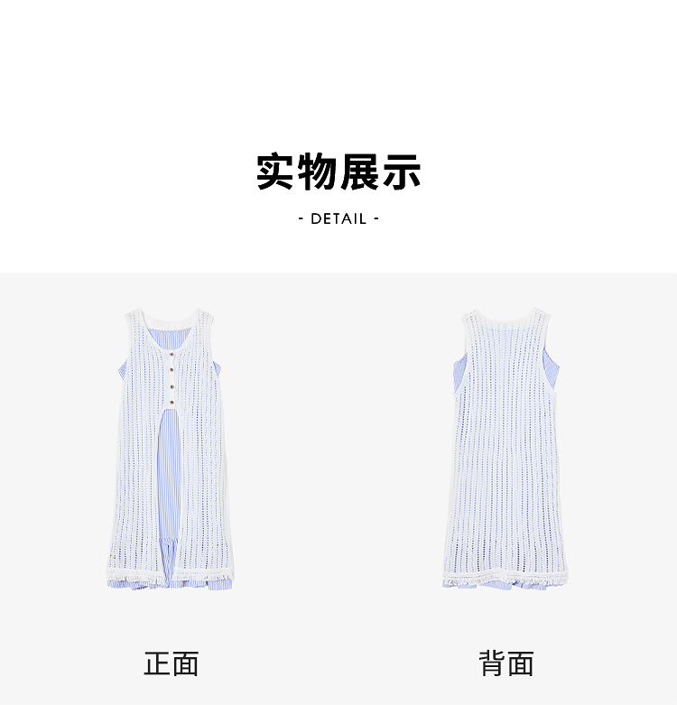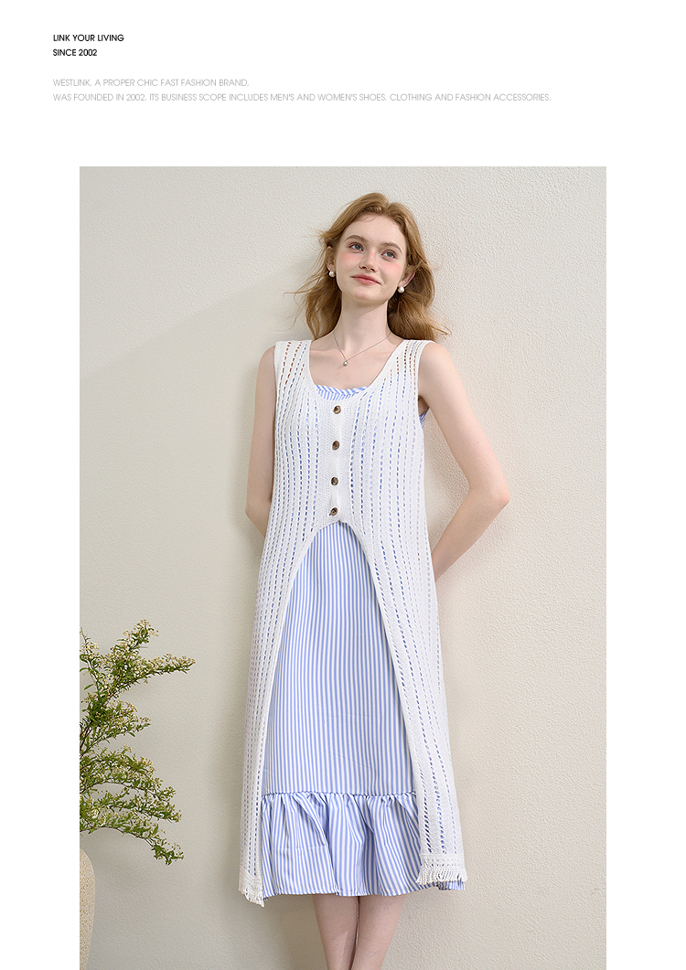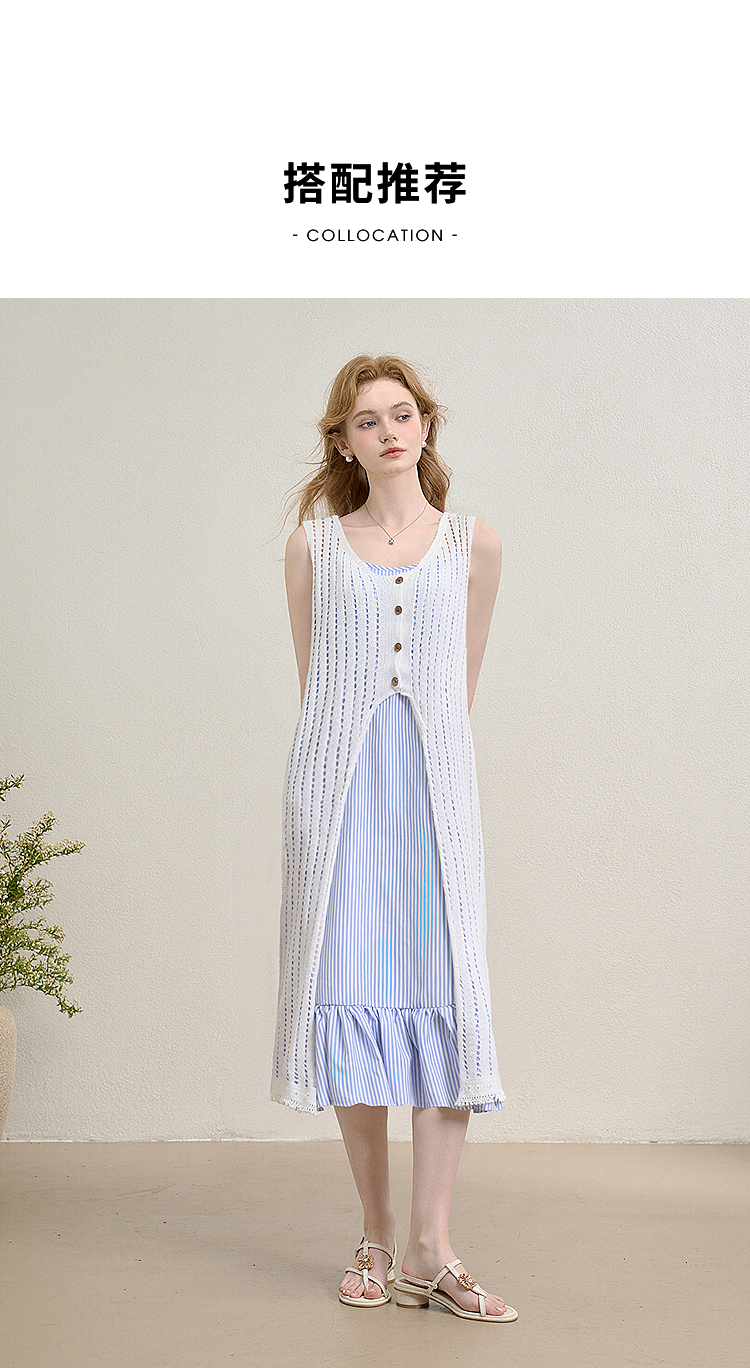 西遇镂空罩衫套装女夏季新款度假叠穿无袖背心连衣裙两件套SS050672