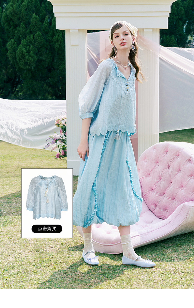两三事行云如水国潮系列春季设计感小众气质衬衫复古印花宽松衬衣