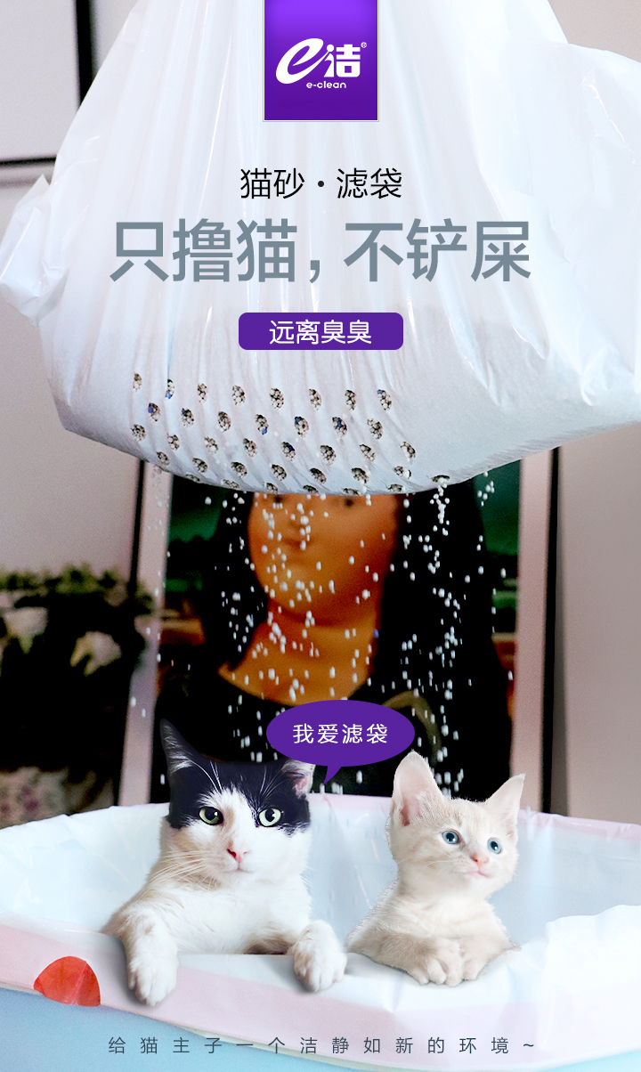 e洁自动收口过滤型猫砂袋4包28只大中小号可选