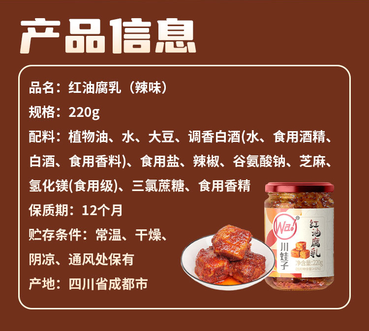 川娃子豆腐乳 红油腐乳拌饭拌面酱下饭菜 220g