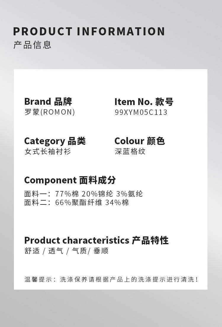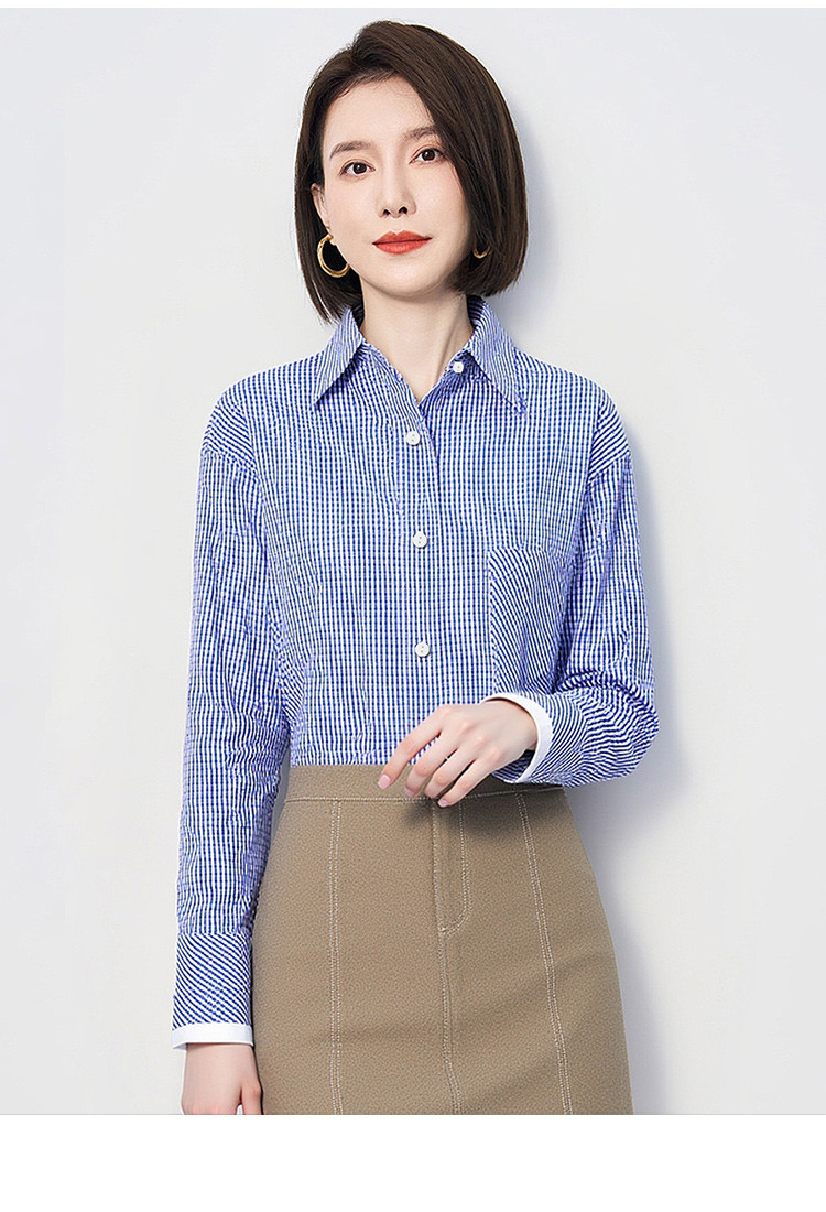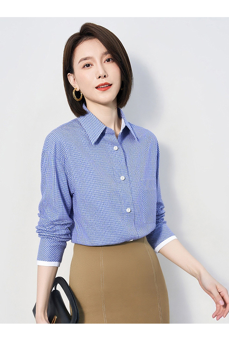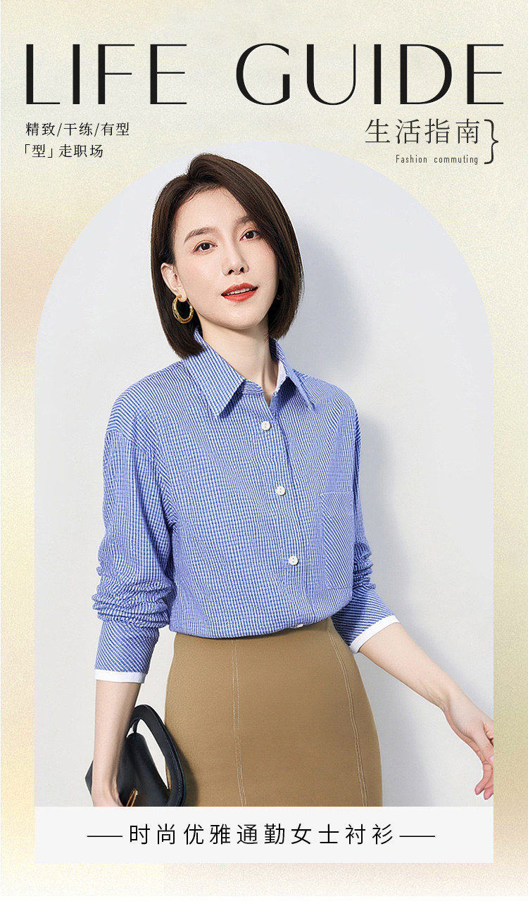 【棉混纺 清新格纹】罗蒙女士春秋长袖衬衫简约大众易打理舒适百搭商务女衬衣