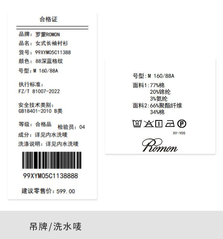 【面料1】棉77%+聚酰胺纤维(锦纶、尼龙)20%+聚氨酯弹性纤维(氨纶)3%;