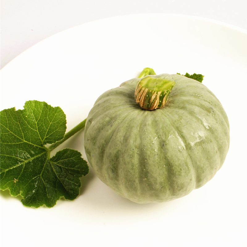 银灰色迷你南瓜,果重300g左右,果形扁圆,外观光滑漂亮。植株生长旺盛,连续座果性好,约35天成熟。耐病性强,栽培容易。