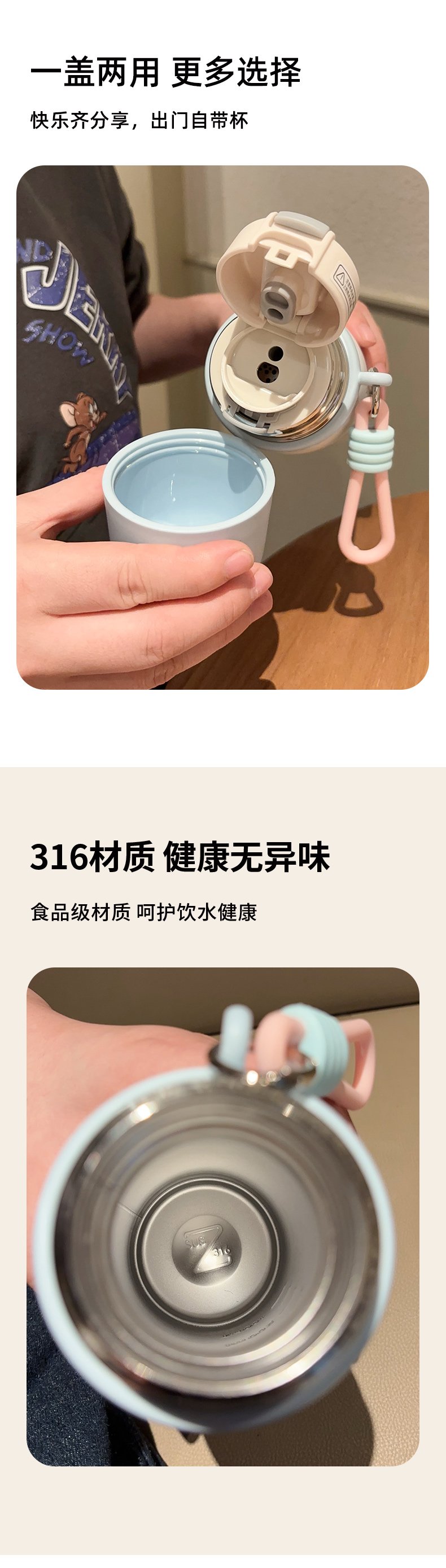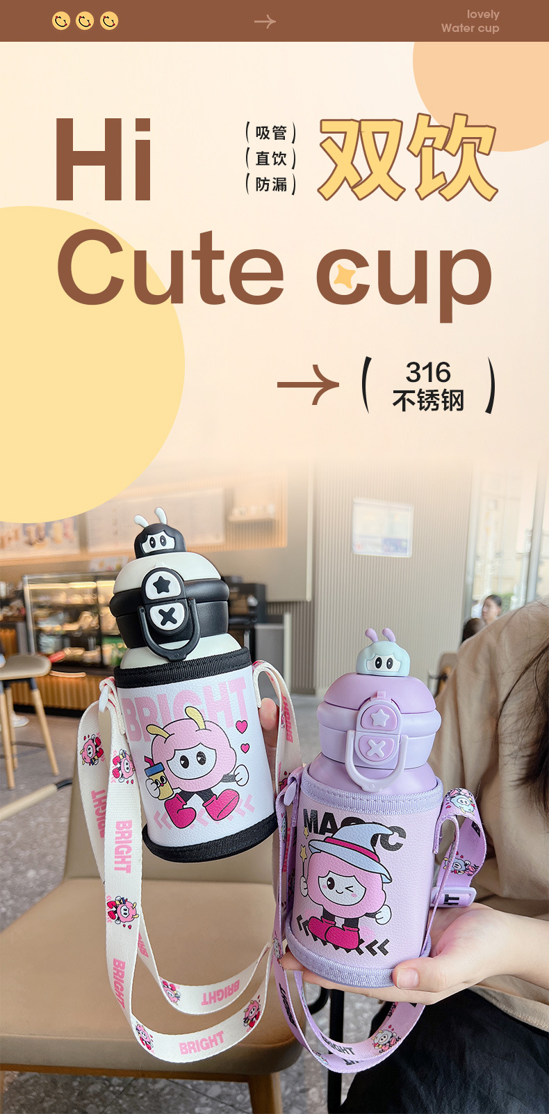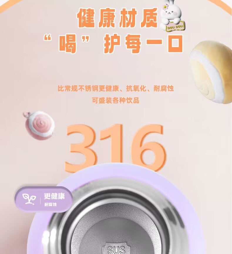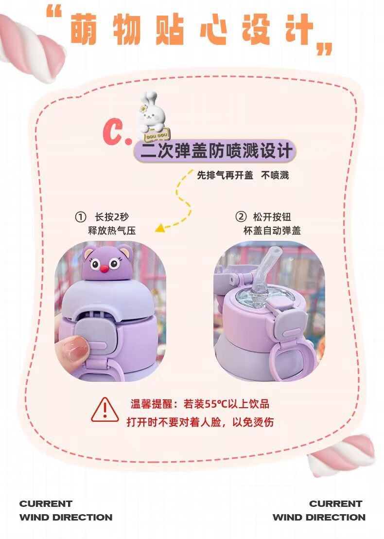 【39.9元/个】可爱儿童保温杯吸管杯316大容量小学生上学专用保温壶喝水杯女孩聚