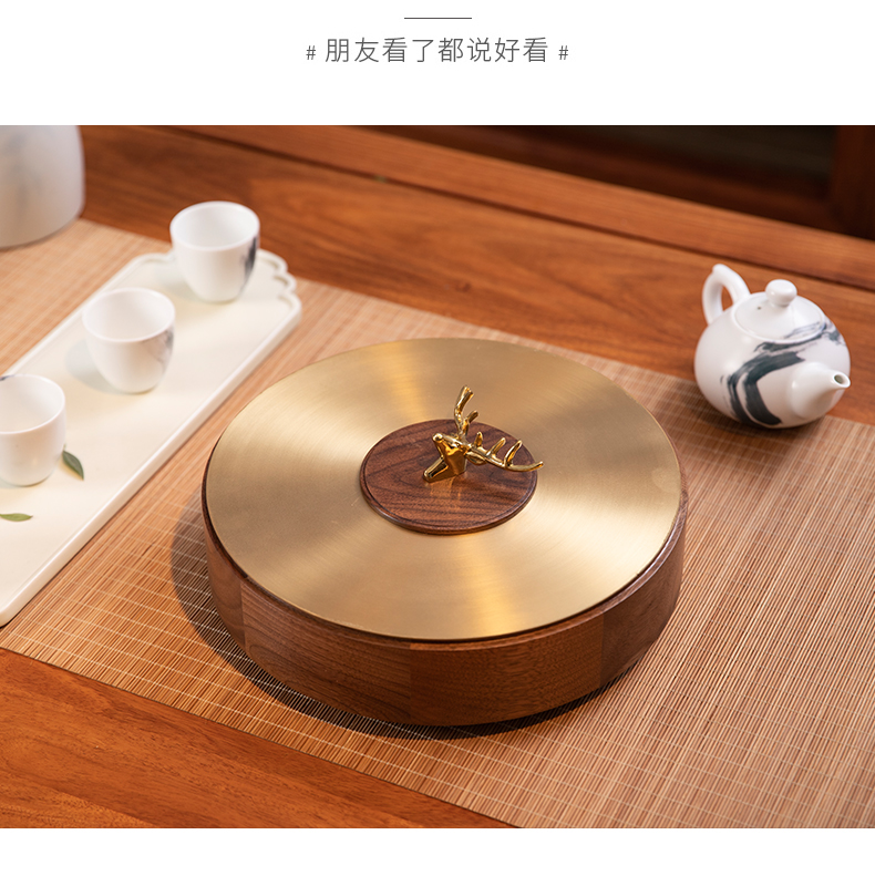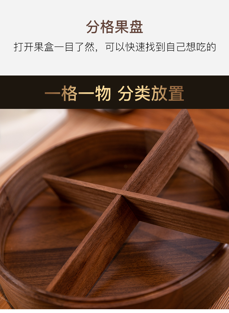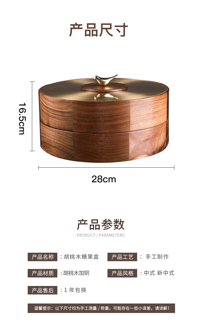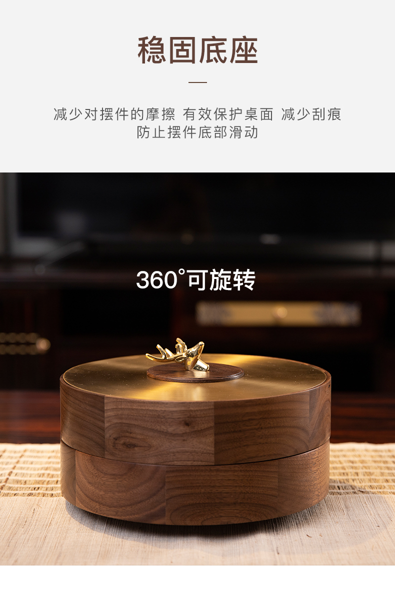 黑胡桃木轻奢带盖纯铜多层创意收纳干果盒零食水果盘客厅茶几家用