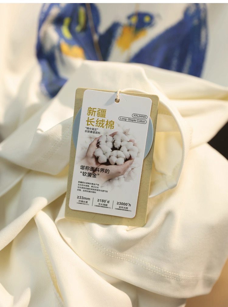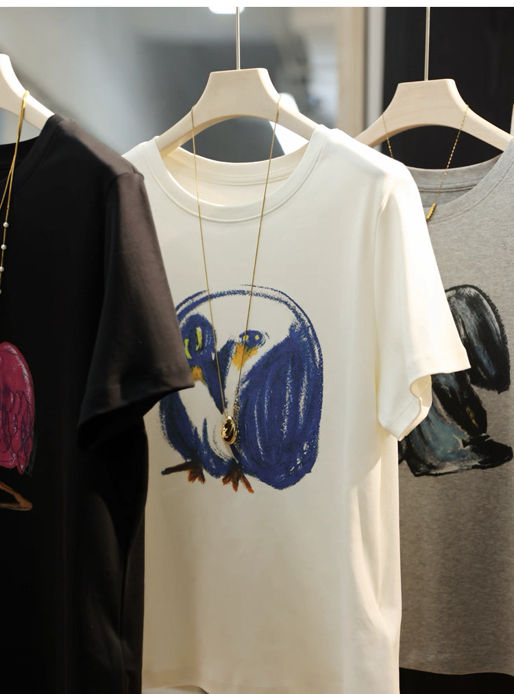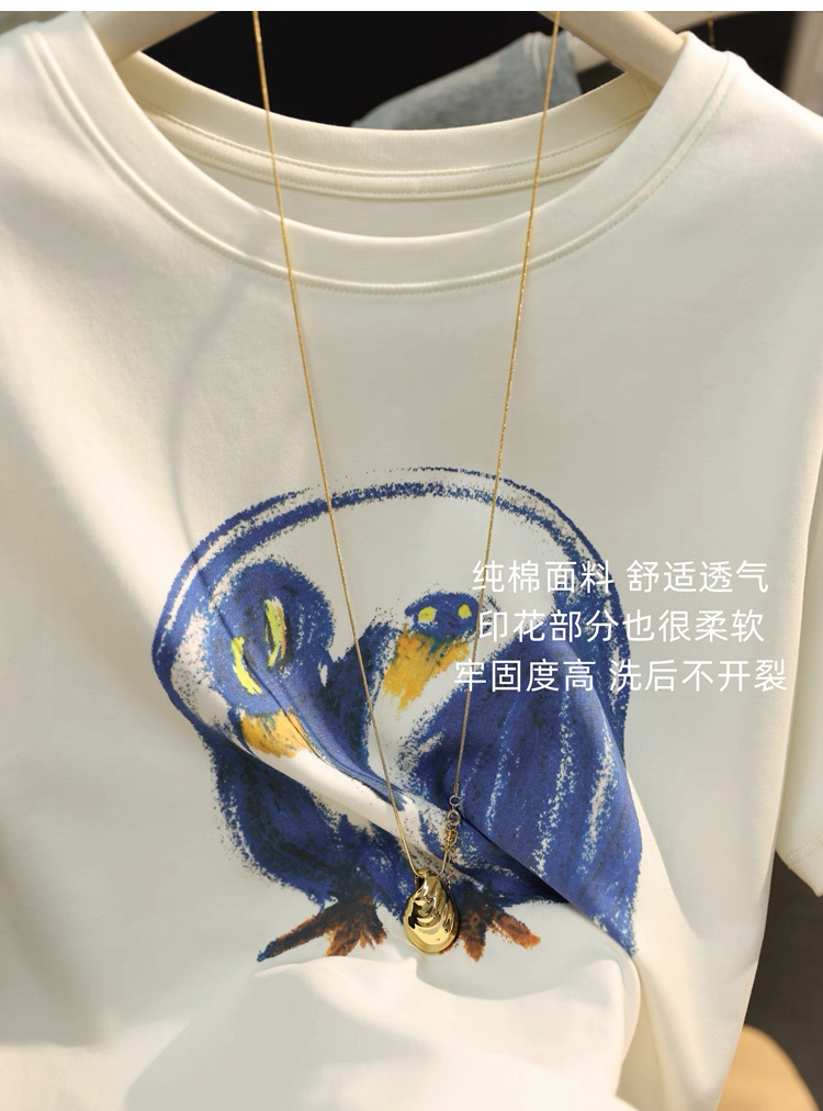💰85元包邮,【XT6077】江南家!艺术涂鸦印花长绒棉圆领宽松T恤