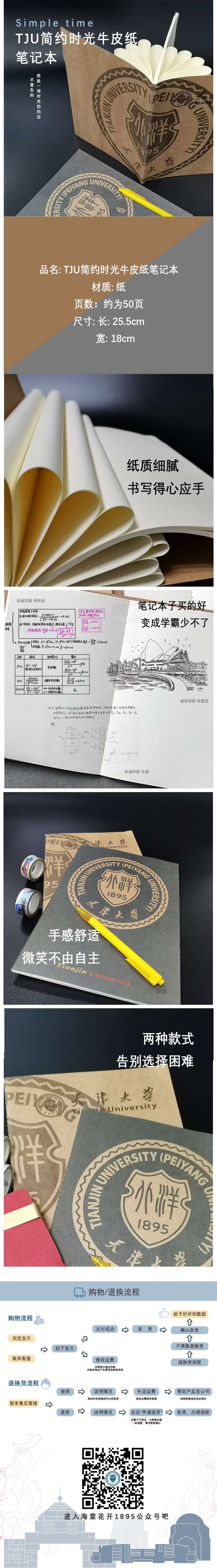 天津大学简约时光牛皮纸笔记本子ins风简约大学生作业练习记事本