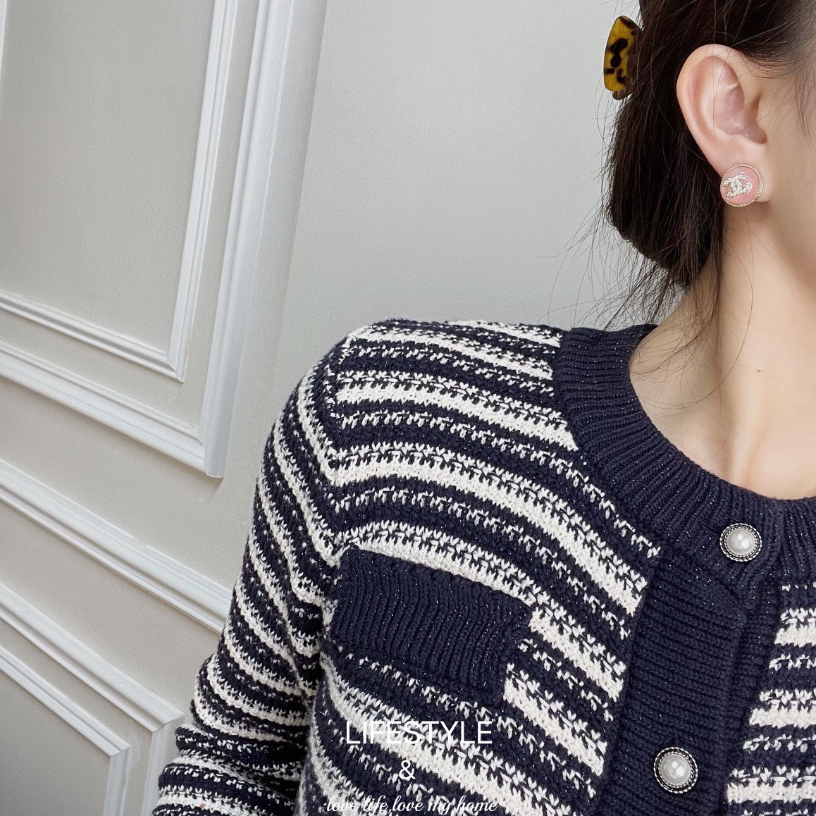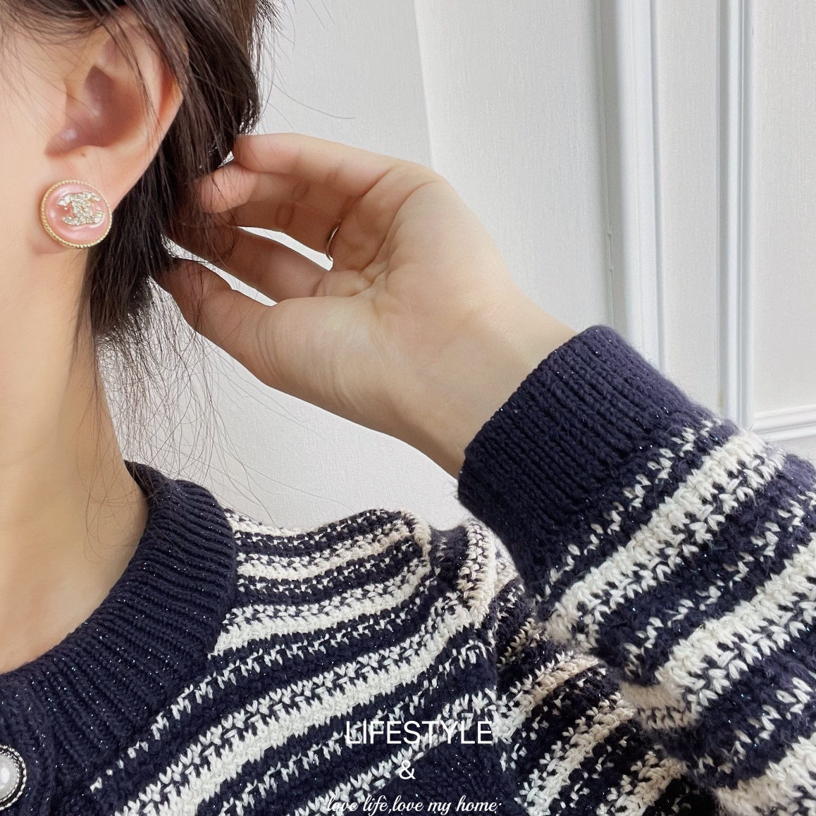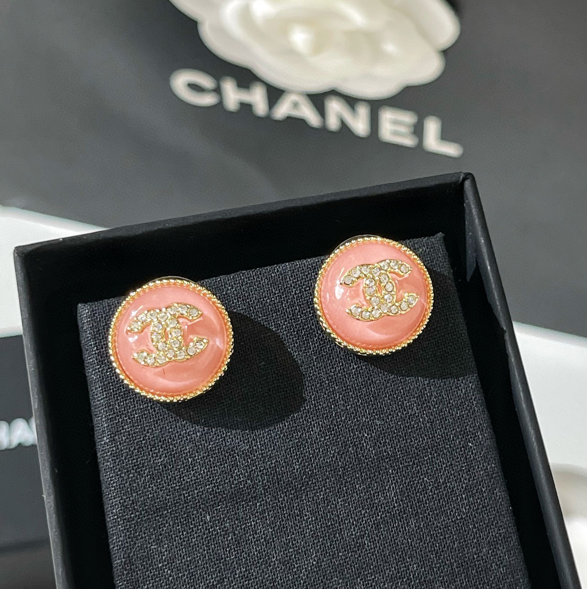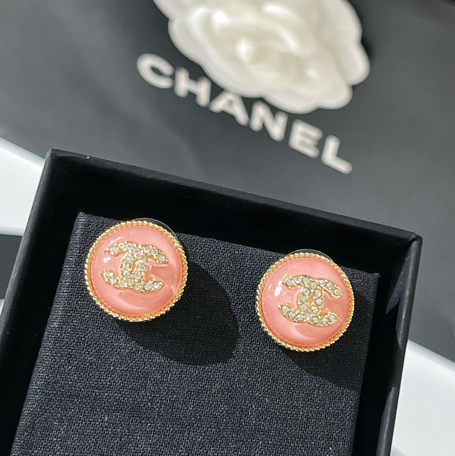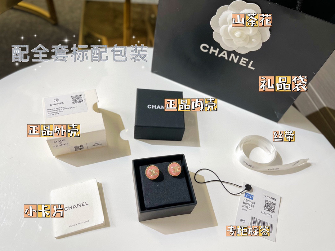 新款☑️CHANEL香奈儿 双c粉耳钉耳环