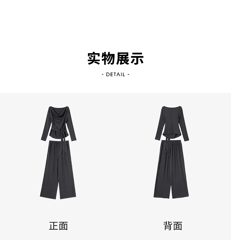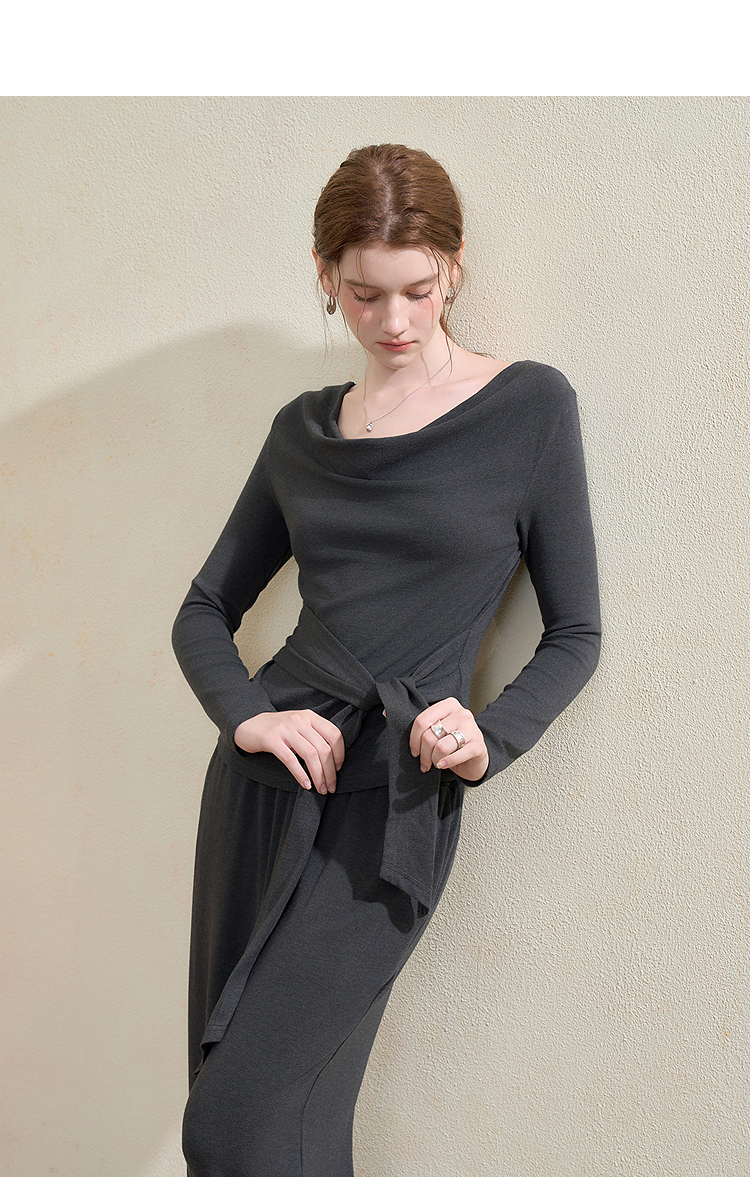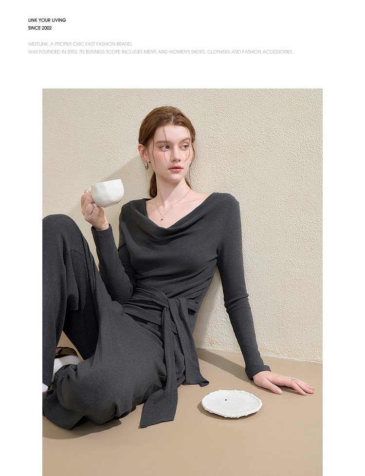 西遇气质休闲针织套装女秋季荡领长袖T恤直筒休闲裤两件套V2951194