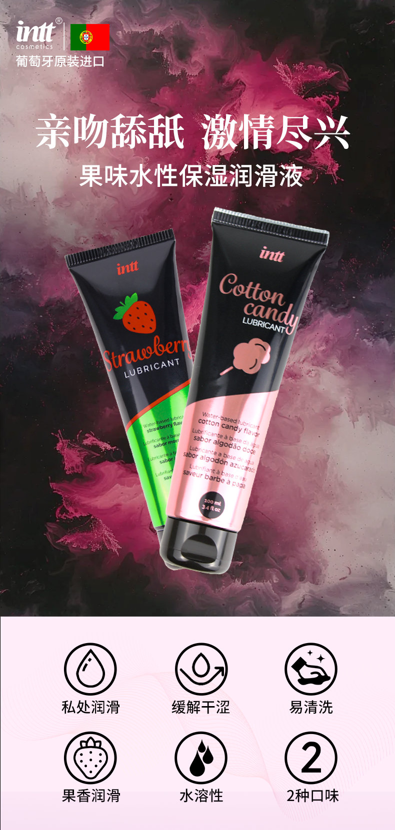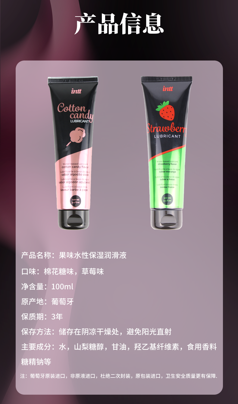 葡萄牙原装intt 水性保湿果味润滑液100ml