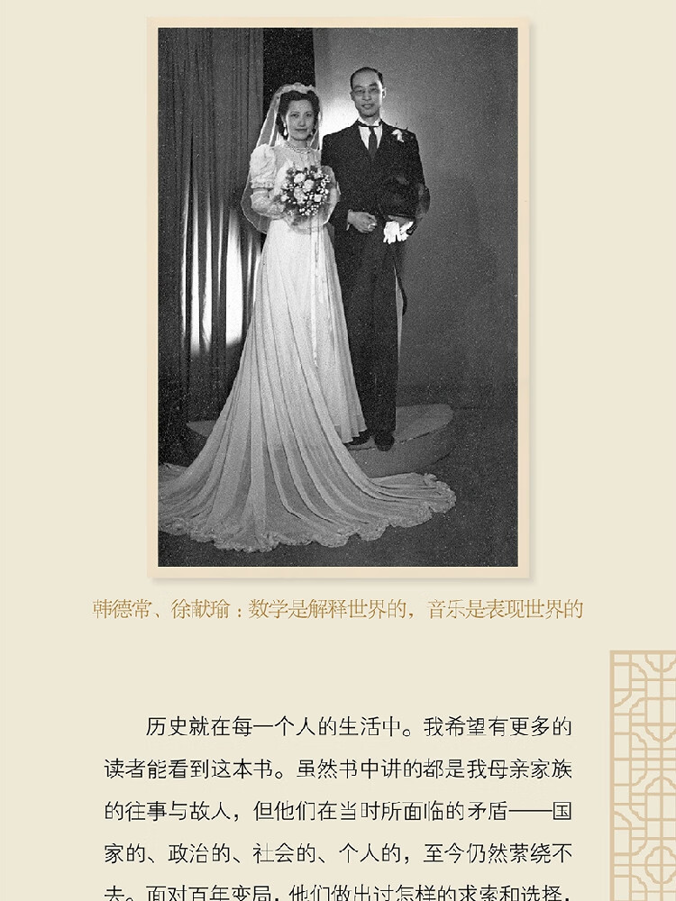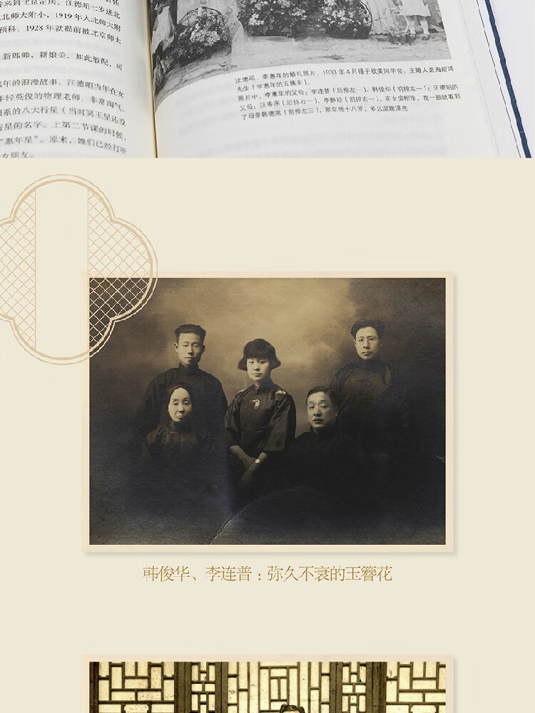 进入我的记忆时,她们都已年过半百,但她们那份气质脱俗的民国范儿,无论遭际如何也不失体面和风度的从容,高龄之后依然保持的娴雅,着实令人过目难忘。母亲的几位姑姑都是20 世纪初中国女性中接受现代教育的一代先驱,她们的婚姻又将各自的人生不可避免地卷进了时代的漩涡。——徐泓